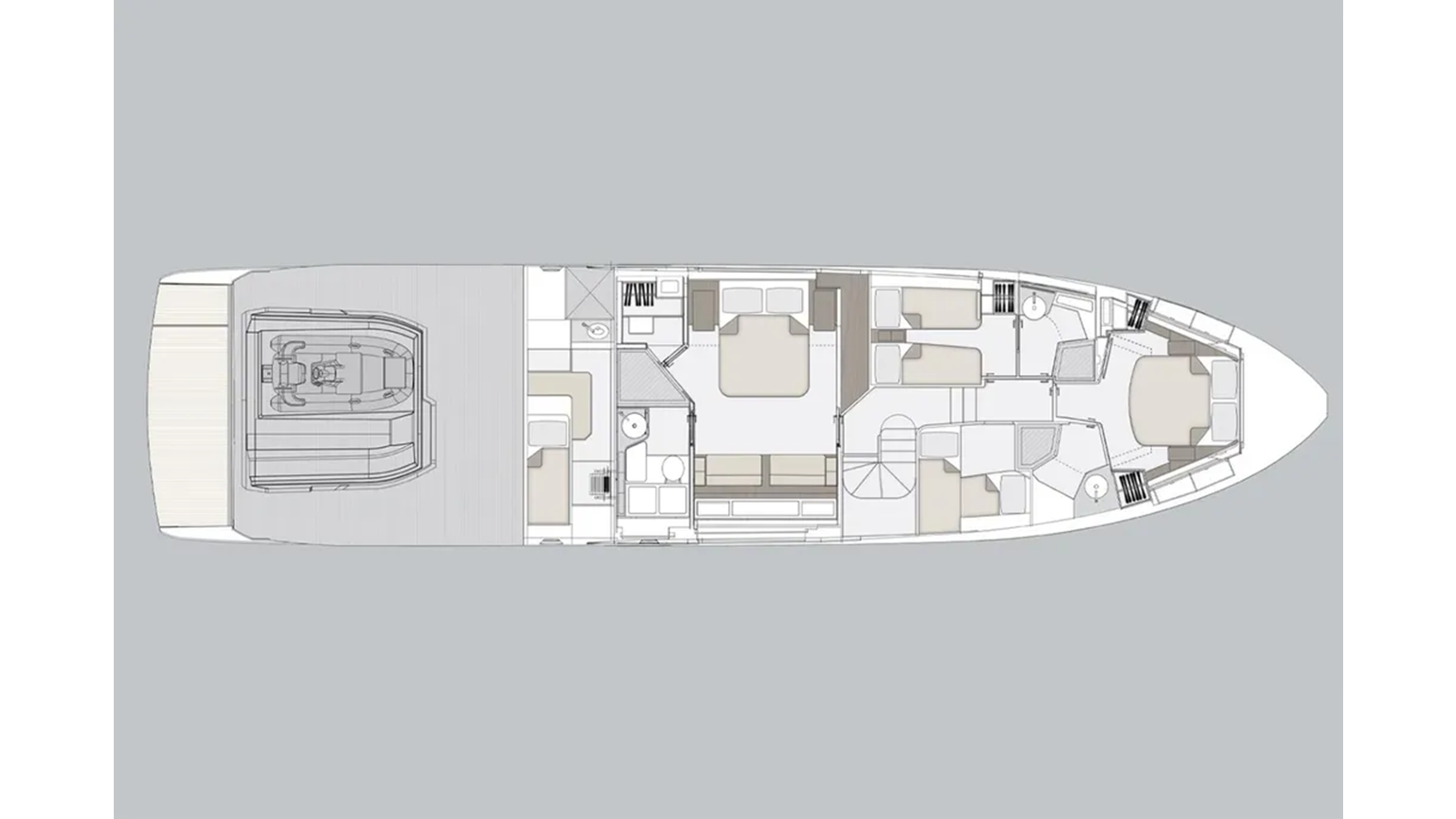 Shaped by an ambitious technological calling to be the most forward-facing sport yacht in her category, the S7 is a paradigm of peak performance and luxurious leisure. A marvel of razor agility and precision, she guarantees the lowest fuel consumption possible and a uniquely quiet allure. The main deck offers a fluid continuum between indoor and outdoor zones, allowing guests to savor their time and space at sea instinctively, in complete and harmonious freedom. Embody an eco-sporty nature with the S7. Thanks to the extensive use of carbon fiber, the adoption of a triple VOLVO IPS engine configuration and a high-efficiency hull, S7 embodies the brand’s revolutionary eco-sport philosophy, delivering maximum performance with a reduction in both fuel consumption and emissions of between 20 and 30% (compared to the traditional propulsion systems), ensuring maximum silence and a sharp, dynamic cruise. The S7’s sporty character is highlighted by her sleek profile, enhanced by the arched line created by the extensive glazing that runs seamless along the superstructure. This magnificent graphical sweep and the cutout bulwarks allow natural light to fill the interiors as much as possible. The carbon fiber-enhanced superstructure offers more spacious environments while maintaining excellent levels of performance and stability. The interior lounge is cool and modernly organized, flooded with light from the large side windows. A deep knowledge of life at sea cultures the latest trends and original design concepts by interior designer Yachtique to realize a dynamic and divergent interior scheme for the S7. The neutral palette of matte-finished colors is at once cozy and chic, softening the sleek, modern furnishings. The surfaces and spaces are designed to minimize obstacles and enhance continuity, expressing the series’ sporty DNA on the inside as well. S7 is the dream boat for contemporary owners who are dynamic and sporty, who love cruising in grand style and in absolute safety, and who also like to keep a close eye on sustainability.