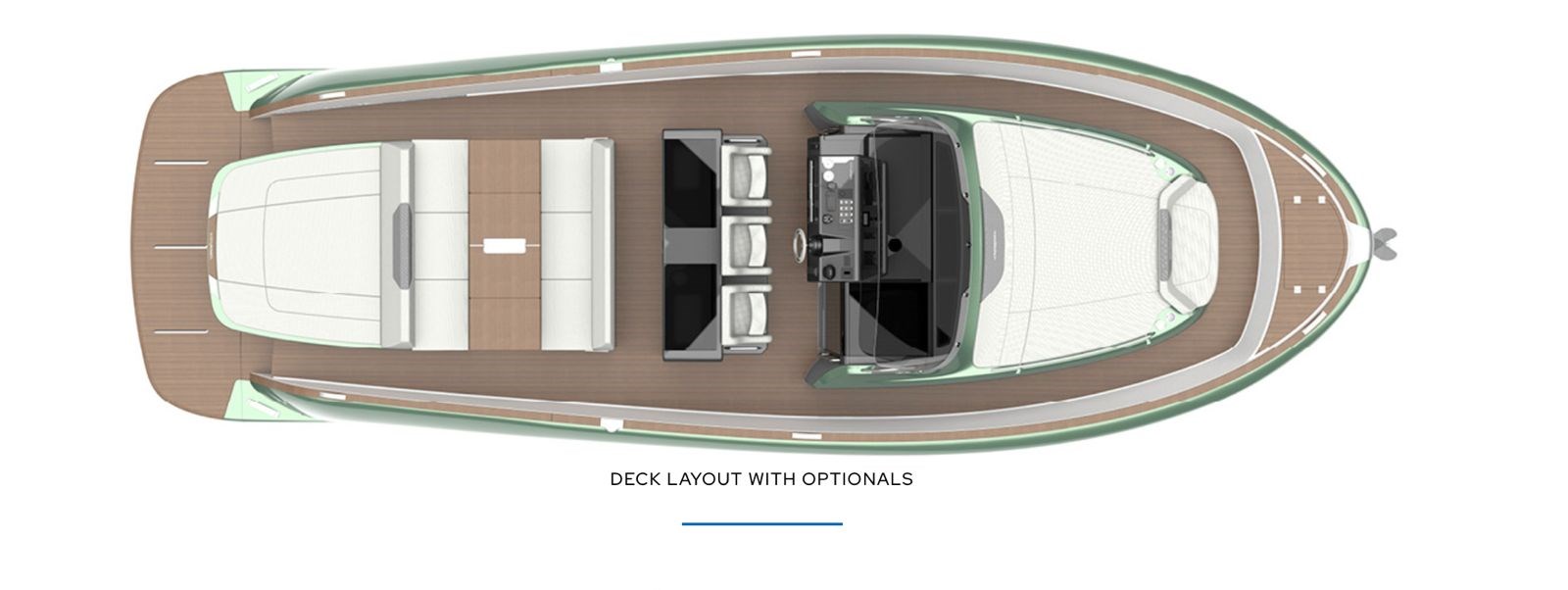 Featuring a deep-V hull optimized for stability and efficiency, it delivers outstanding performance even in challenging sea conditions. The deck layout offers generous walkaround spaces, a fully equipped aft galley, a large sunpad, and convertible lounging areas that seamlessly blend outdoor freedom with refined luxury.