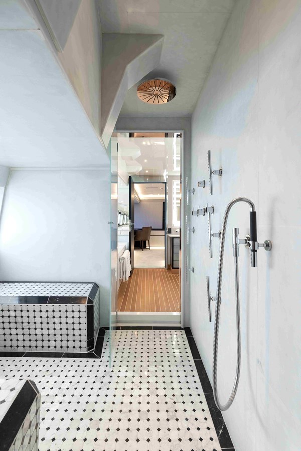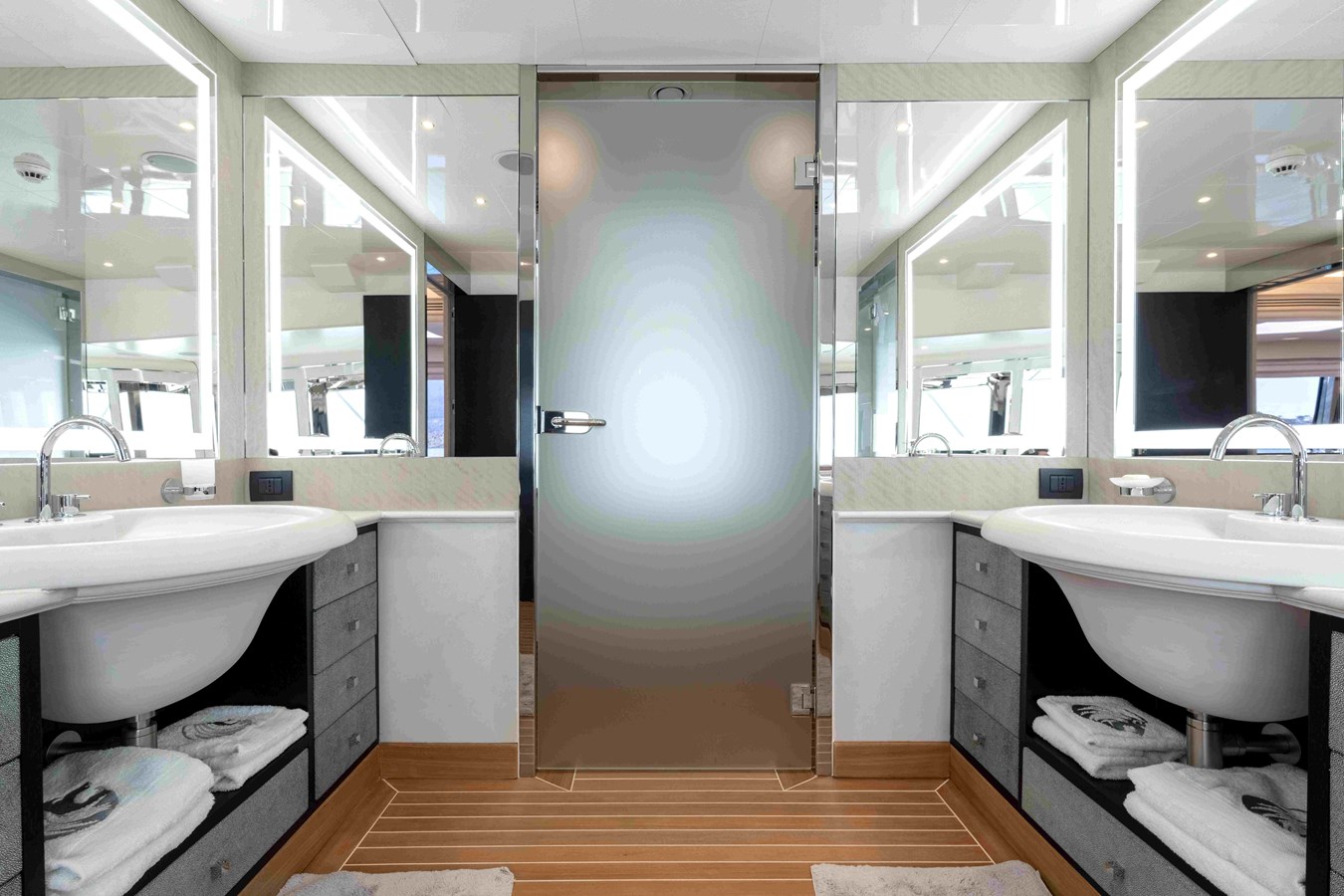 AQUILA offers accommodation for up to ten guests in five cabins, including full beam owner’s suite with walk-in wardrobes and en suite bathroom , 2 VIP cabins on the lower deck with walk-in wardrobe and en suite bathroom, 1 Twin cabin with en suite shower room and 1 x double cabin with en suite shower room.