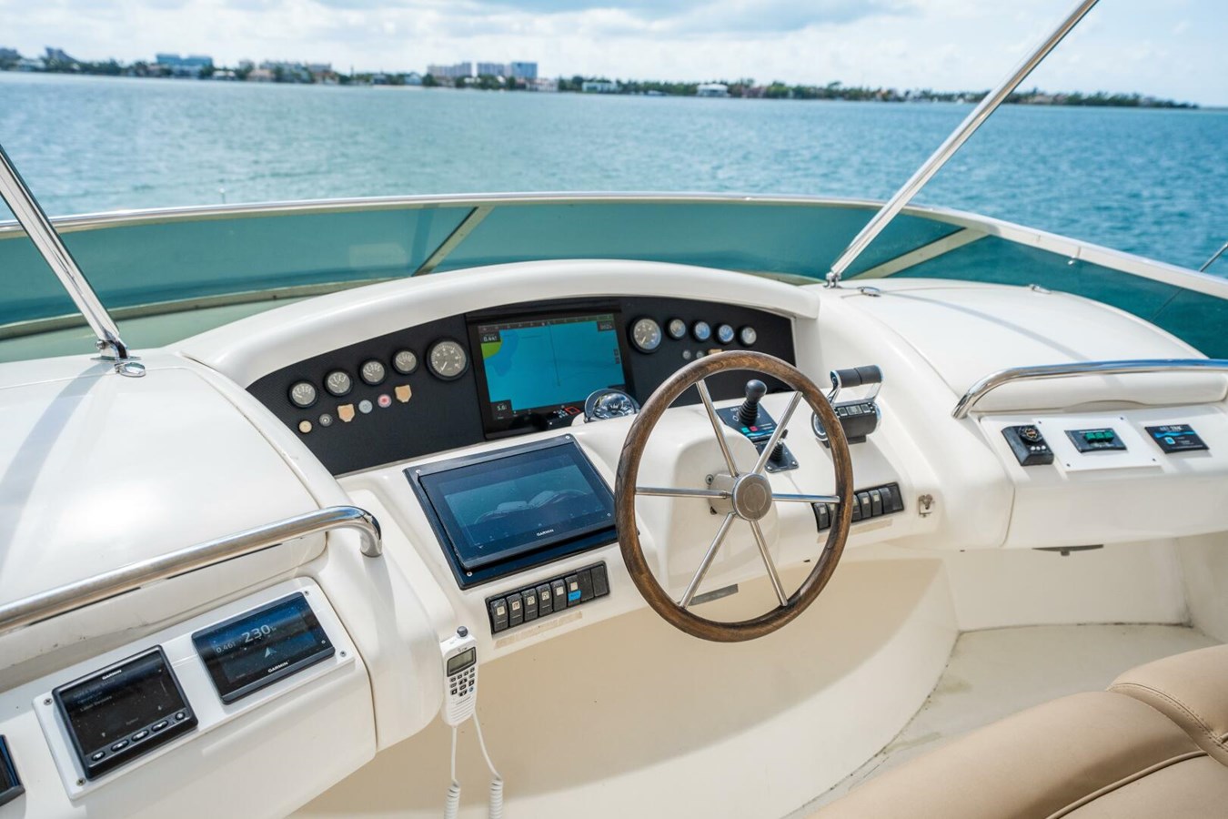 Wireless phone charger at fly bridge helm