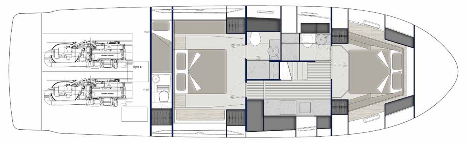 At the stern, the spacious beach club opens out to a versatile platform, ready to launch a tender or for effortless ocean access. Up front, the bow lounge area offers an inviting escape with deep seating and a generous sunpad, the perfect spot to unwind or entertain in style.