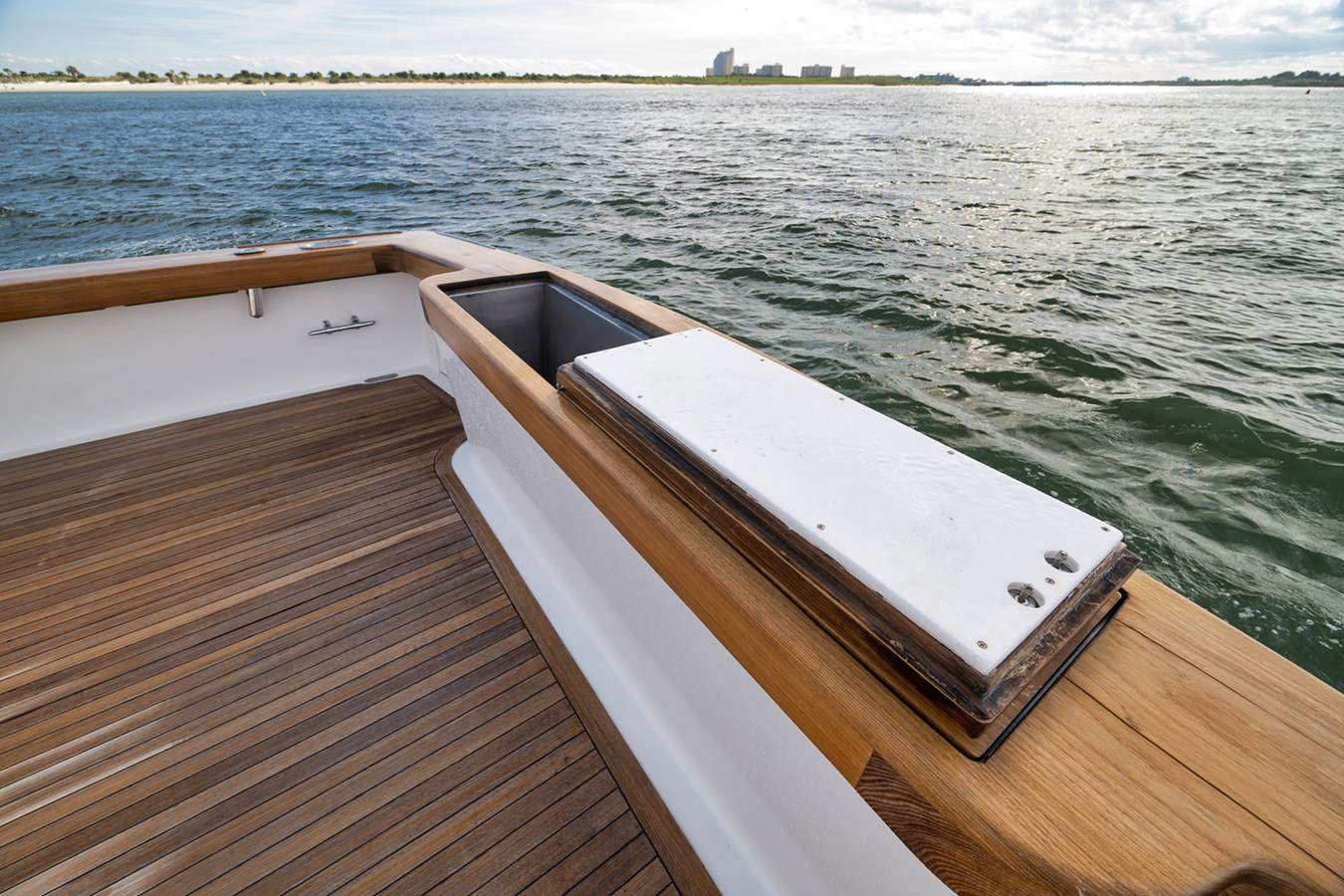 - Cockpit Mezzanine Seating with Removable Cushions (3) Insulated Bait/Drink Boxes, Ice Bin Beneath Mezzanine Seat