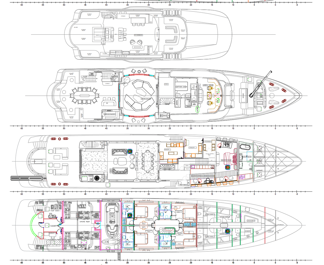 Her four-deck layout is optimised for entertainment, highlighted by a signature sundeck featuring a Jacuzzi with a cascading waterfall, full bar, teppanyaki grill, and a dedicated DJ console with dance floor. At water level, a full-beam beach club and extended hydraulic swim platform create an ideal setting for relaxation and seamless access to watersports.
