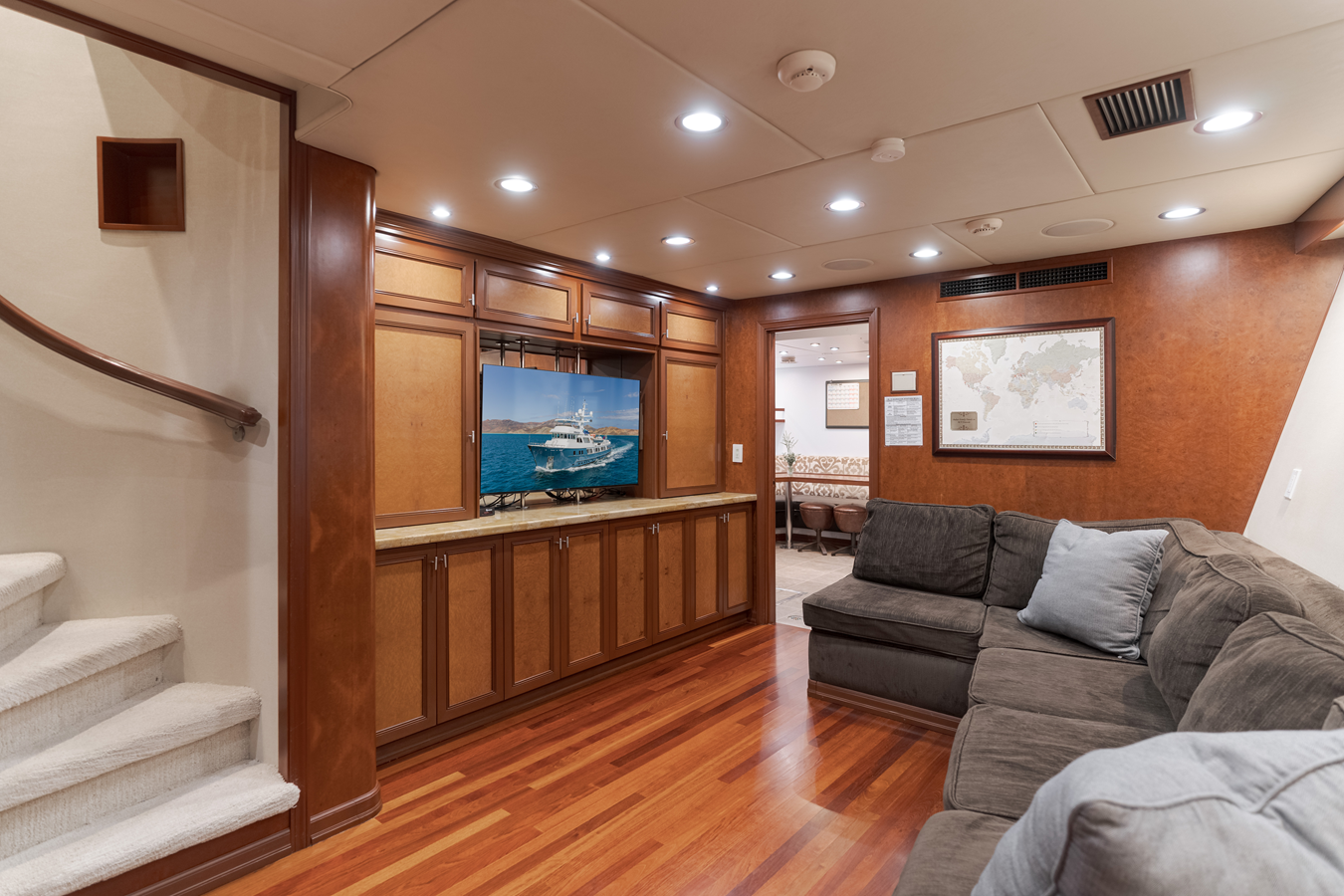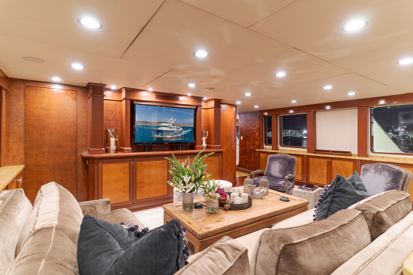 • Complete Major Overhaul and Upgrade to Electronic Caterpillar 3508 Turbo Diesels • Complete Overhaul of Transmissions • Upgraded Updated Furuno Electronics; Radar TZ2 Multifunctional, GPS, AIS, Autopilot • New Air Conditioning units, 18-ton, 8-ton, and two 6-ton units. • New Galley Appliances • New Carpeting throughout • New Apple Audio Visual storage and Sound Control System • New Hull Paint
