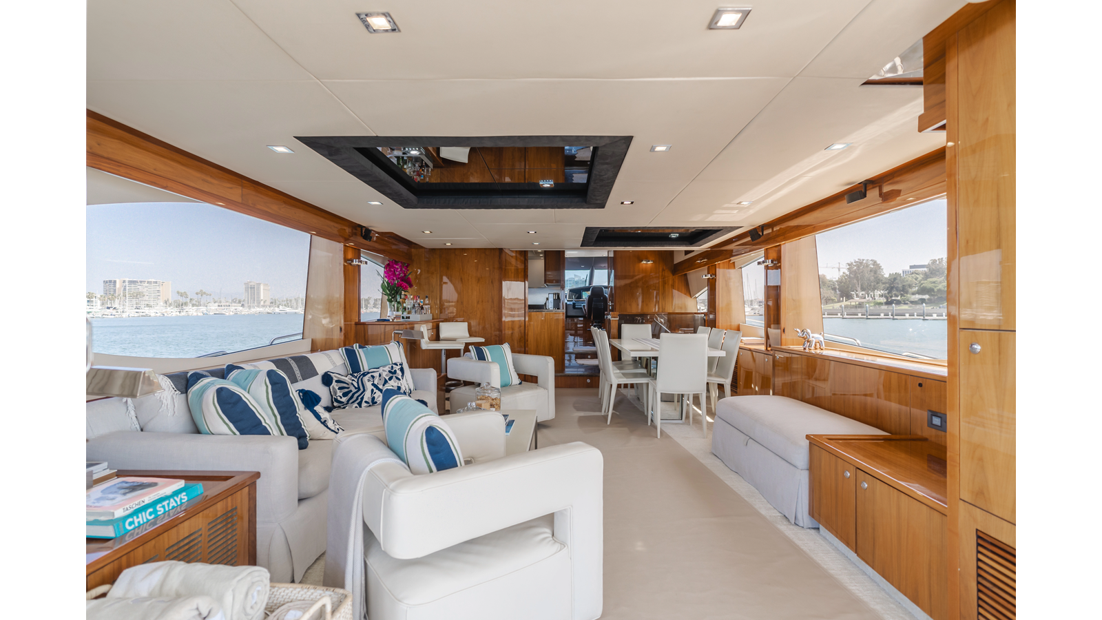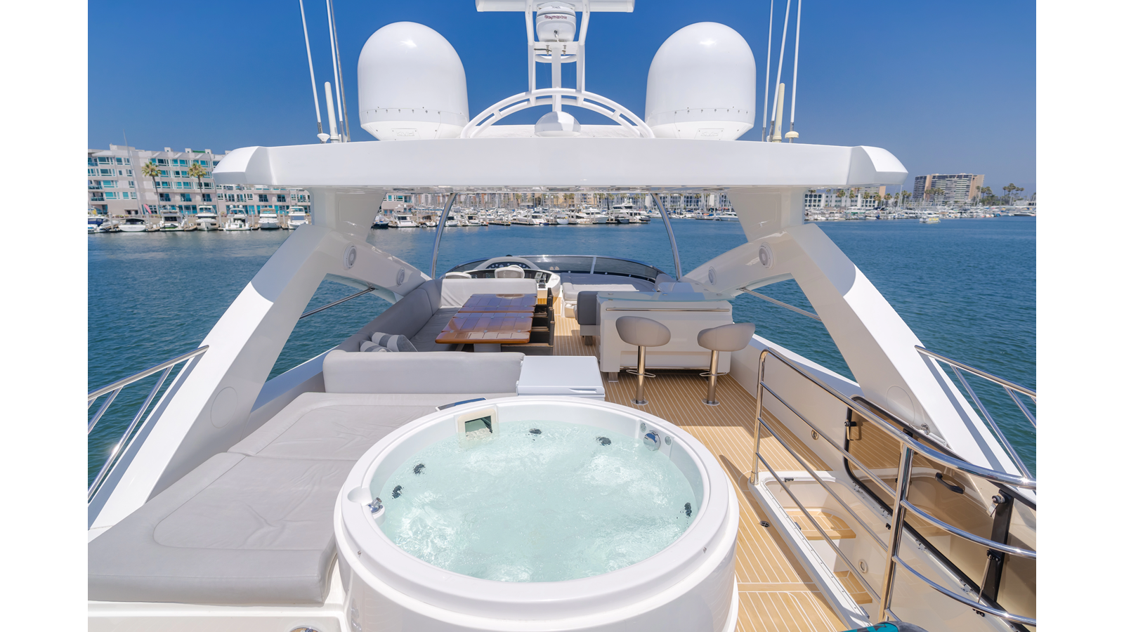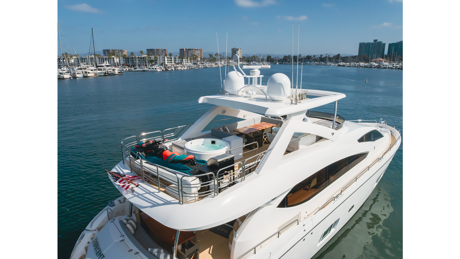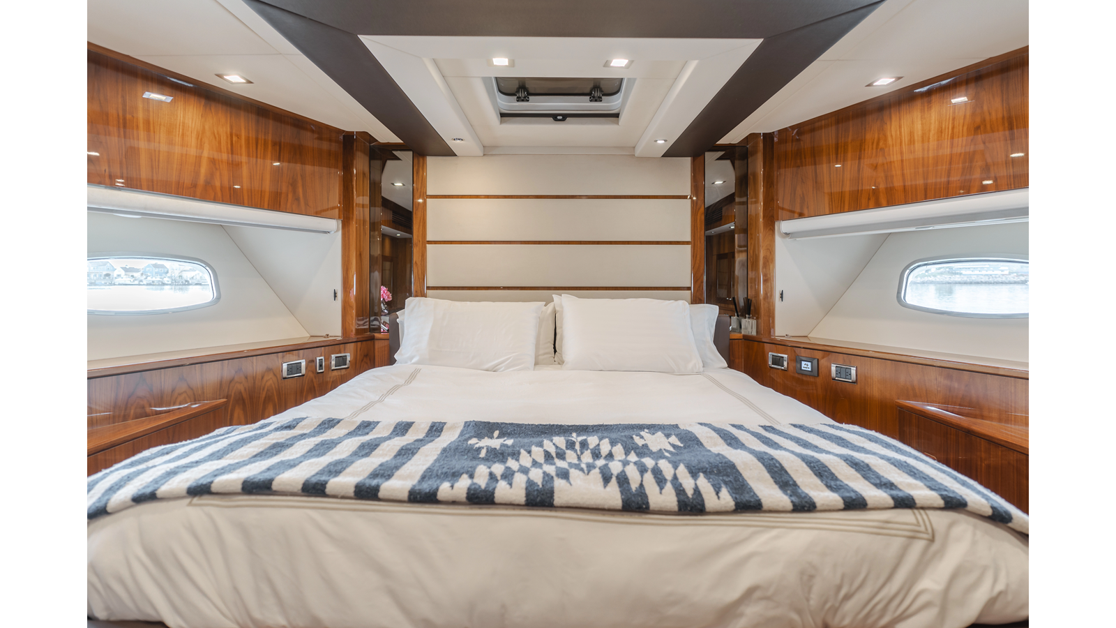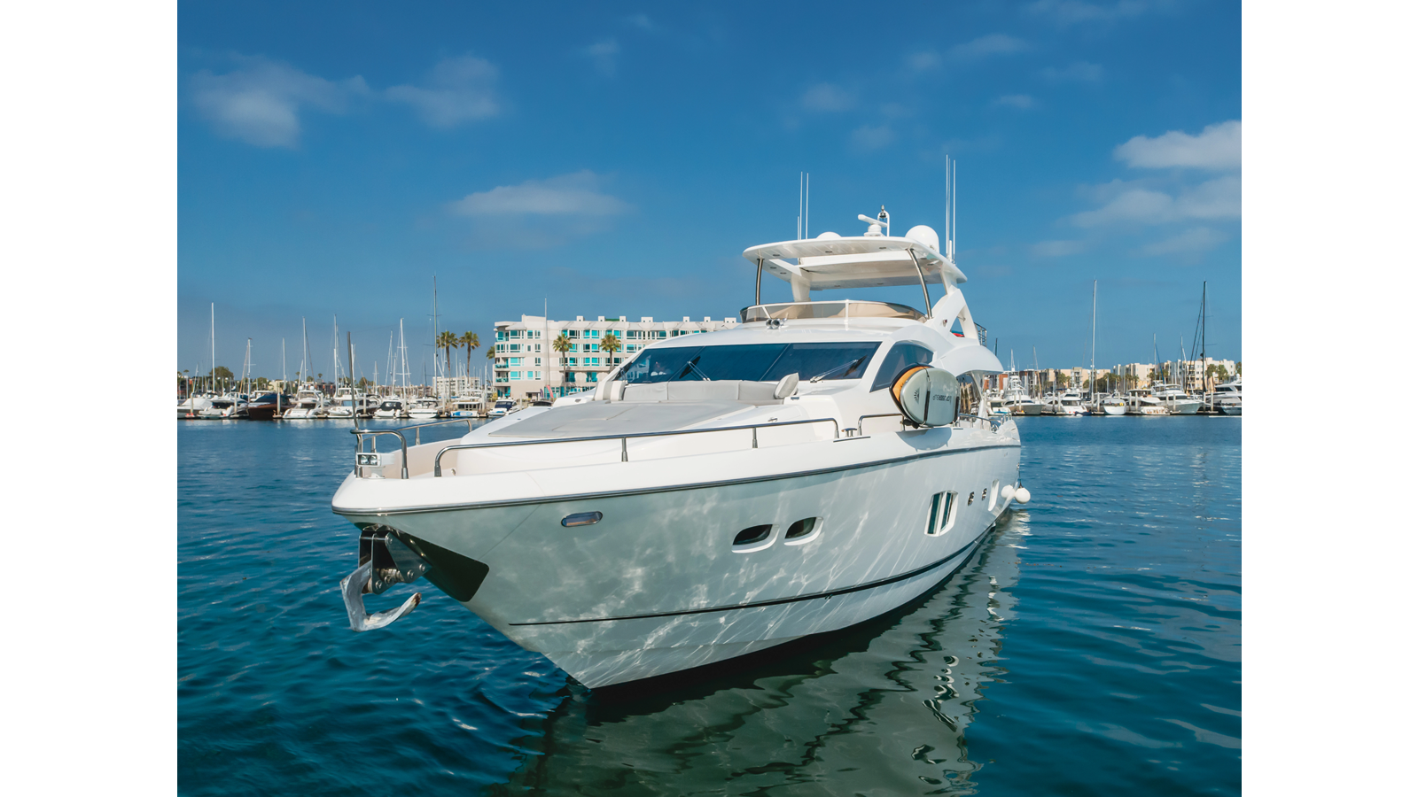 Equipped with zero-speed fin stabilization, ensuring a comfortable ride underway, or at anchor.
