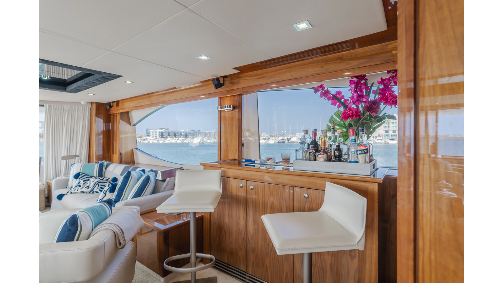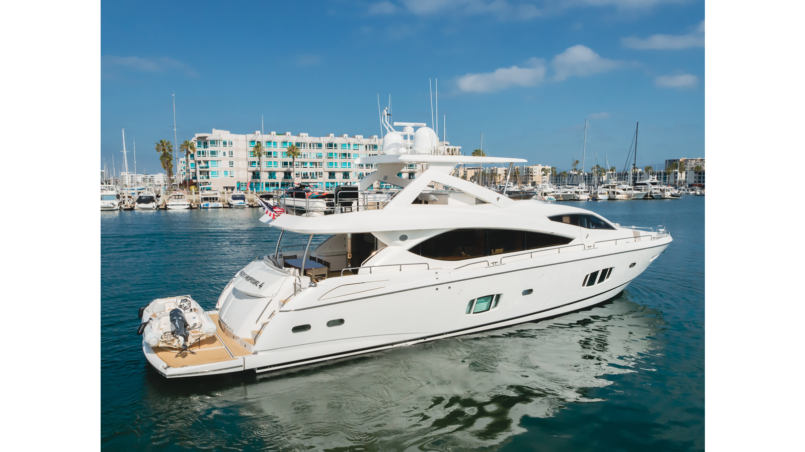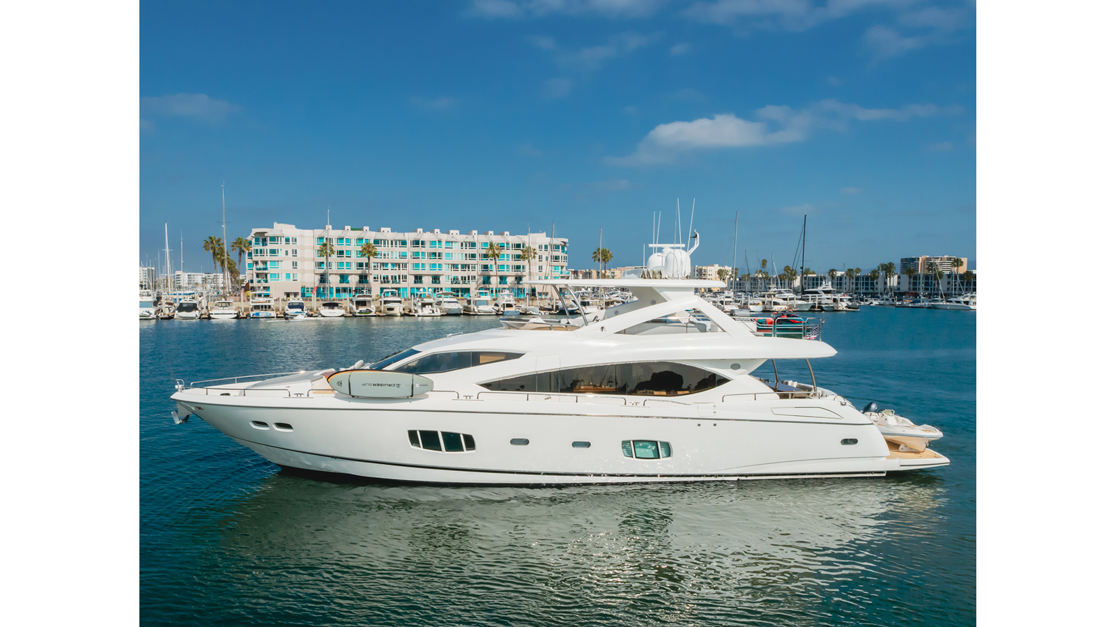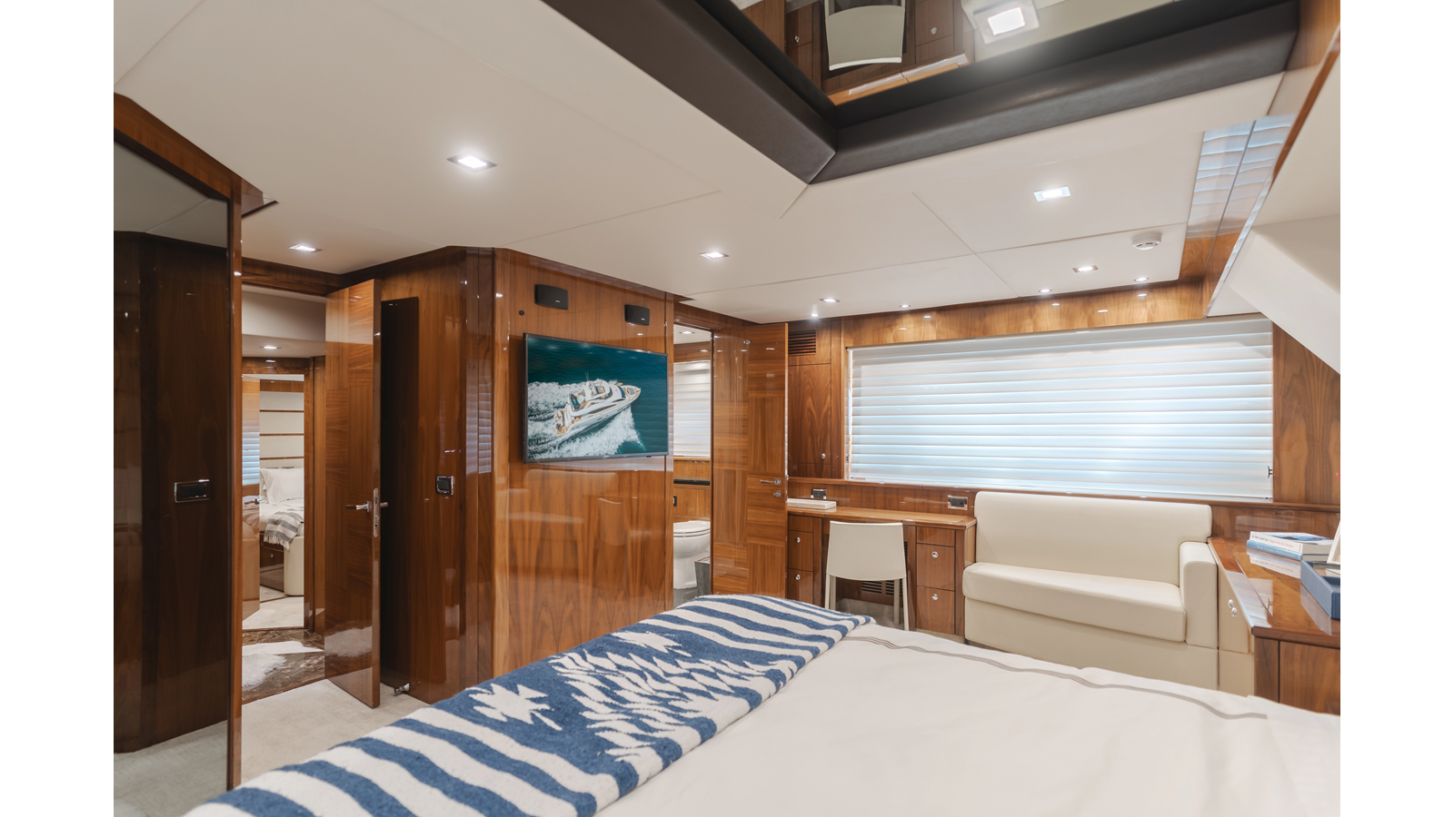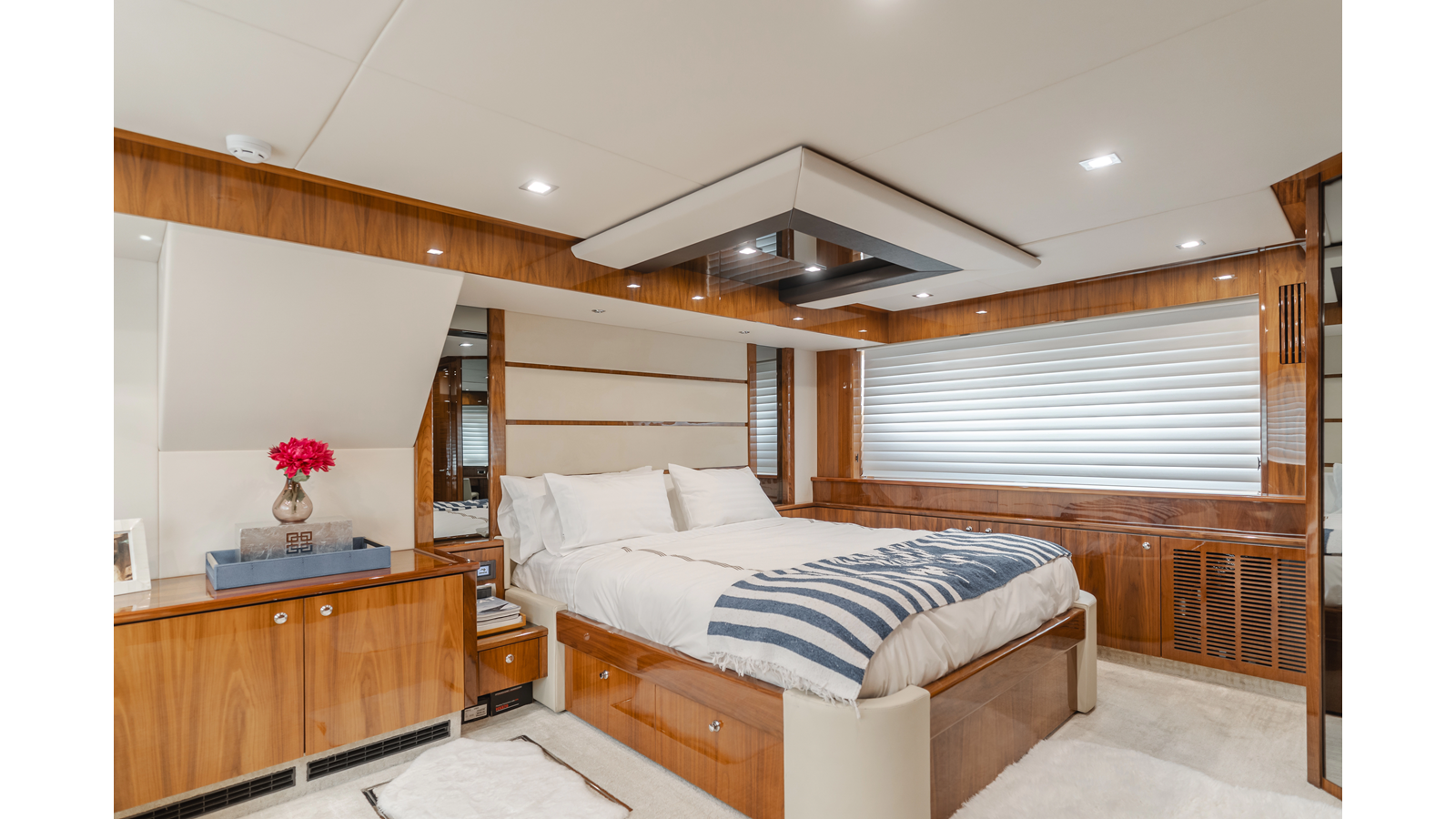 Equipped with zero-speed fin stabilization, ensuring a comfortable ride underway, or at anchor.