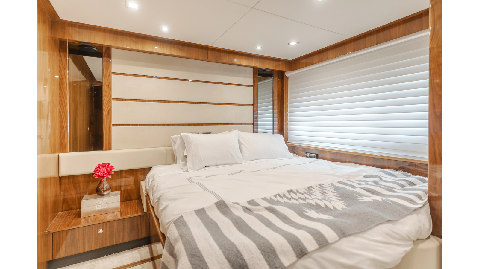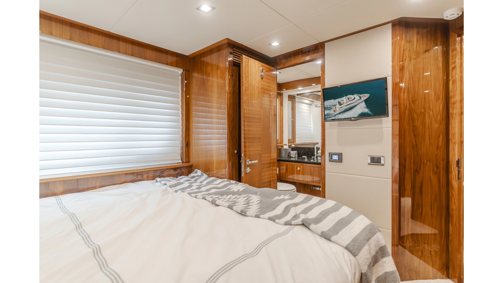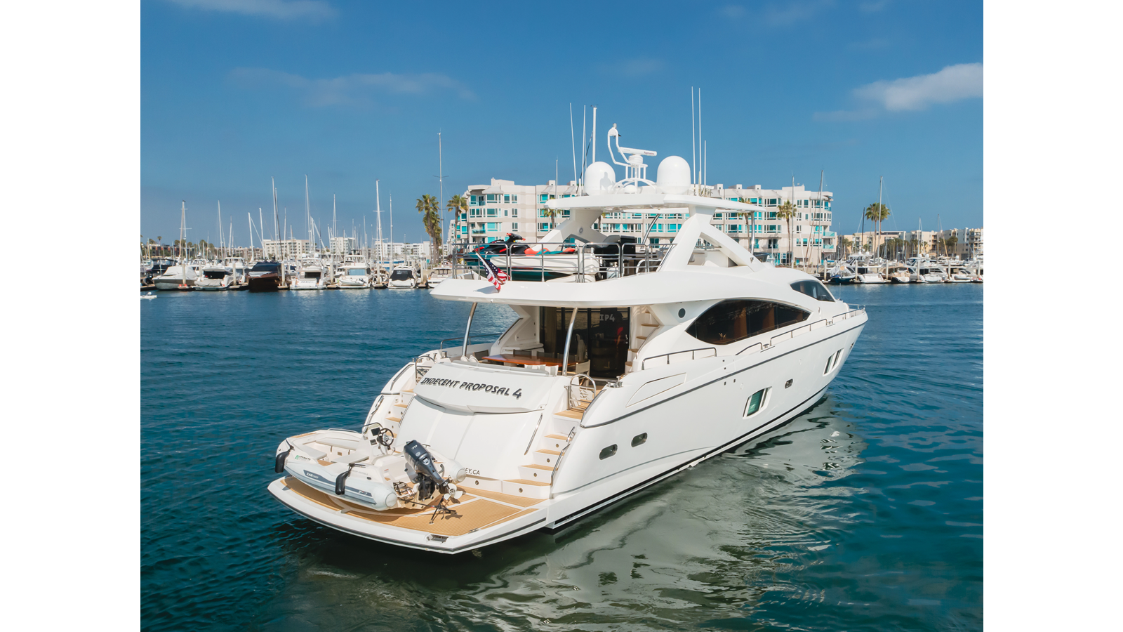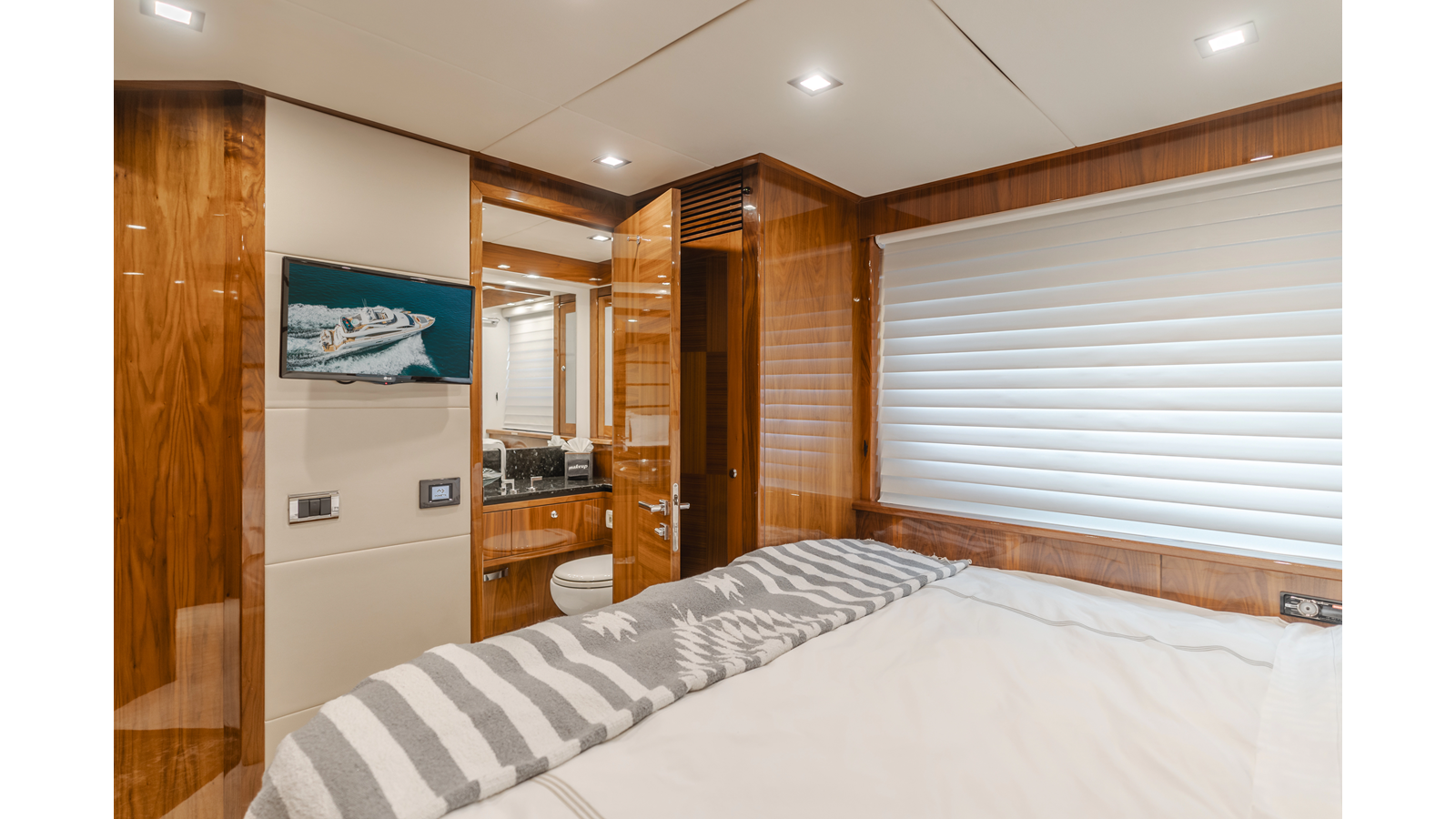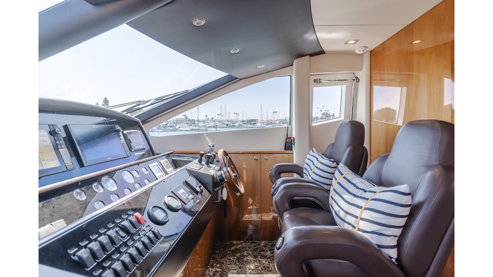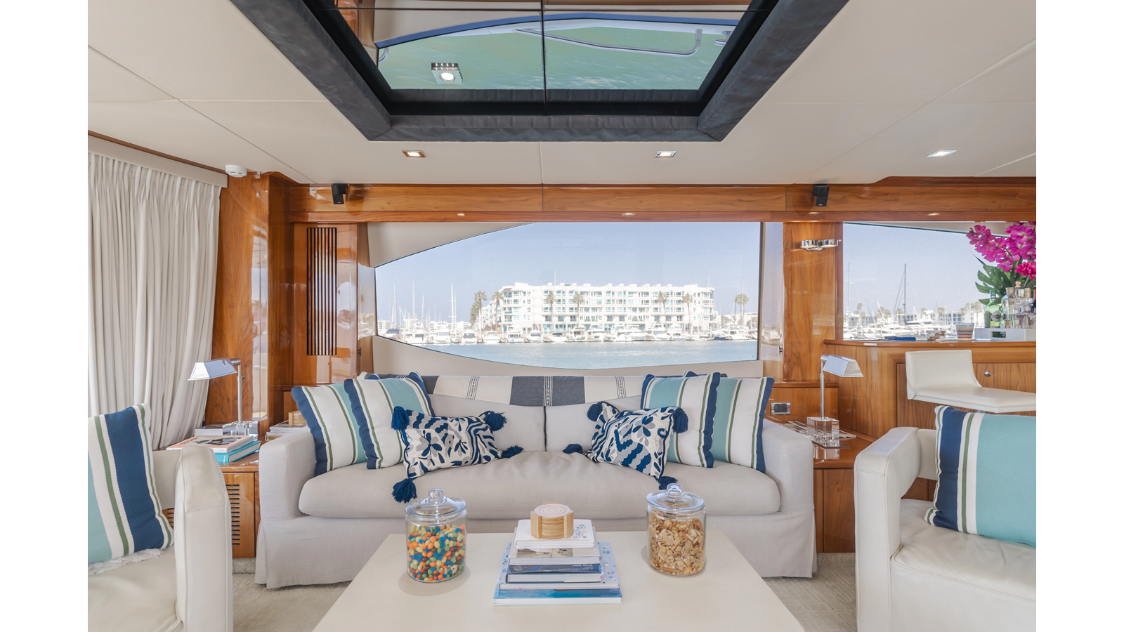 Equipped with zero-speed fin stabilization, ensuring a comfortable ride underway, or at anchor.