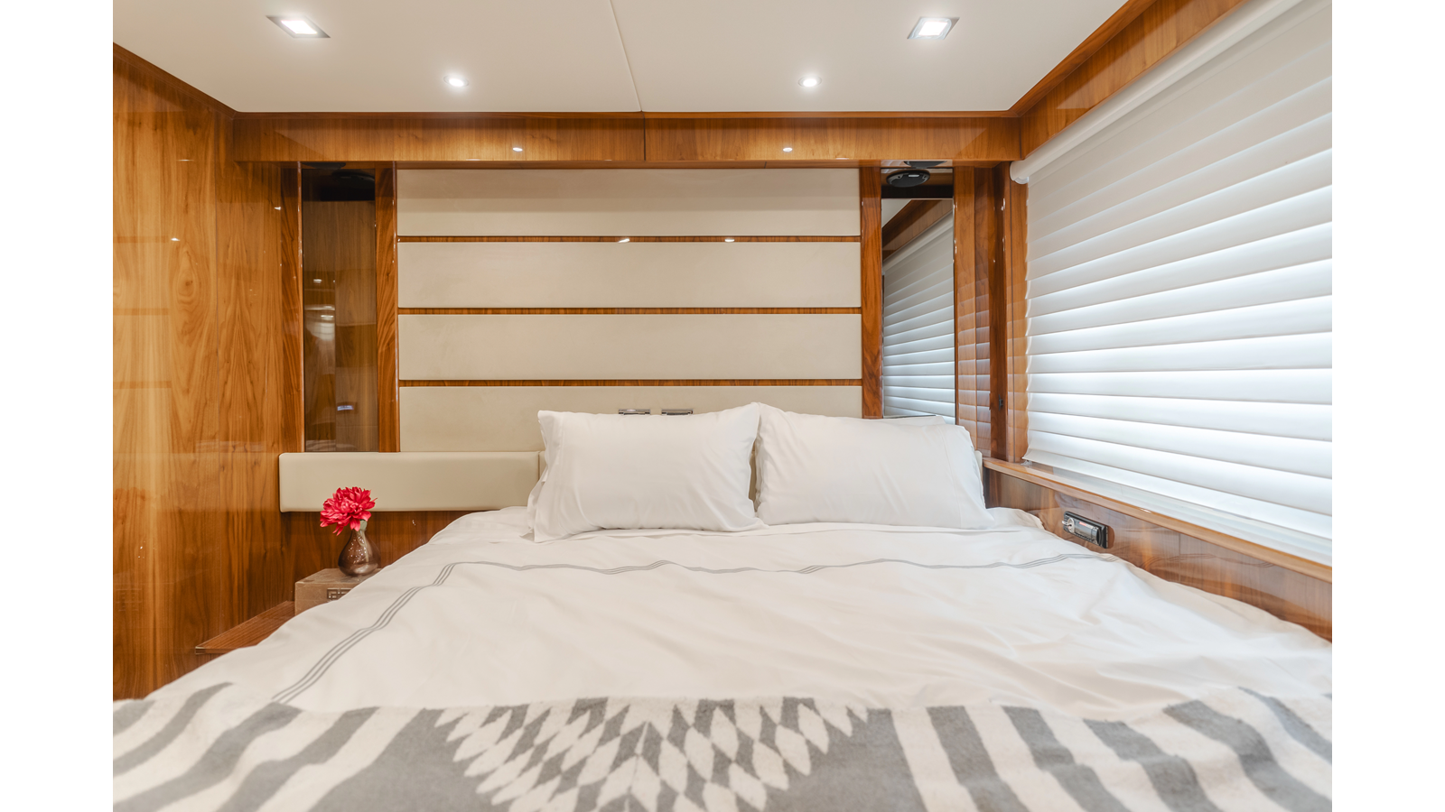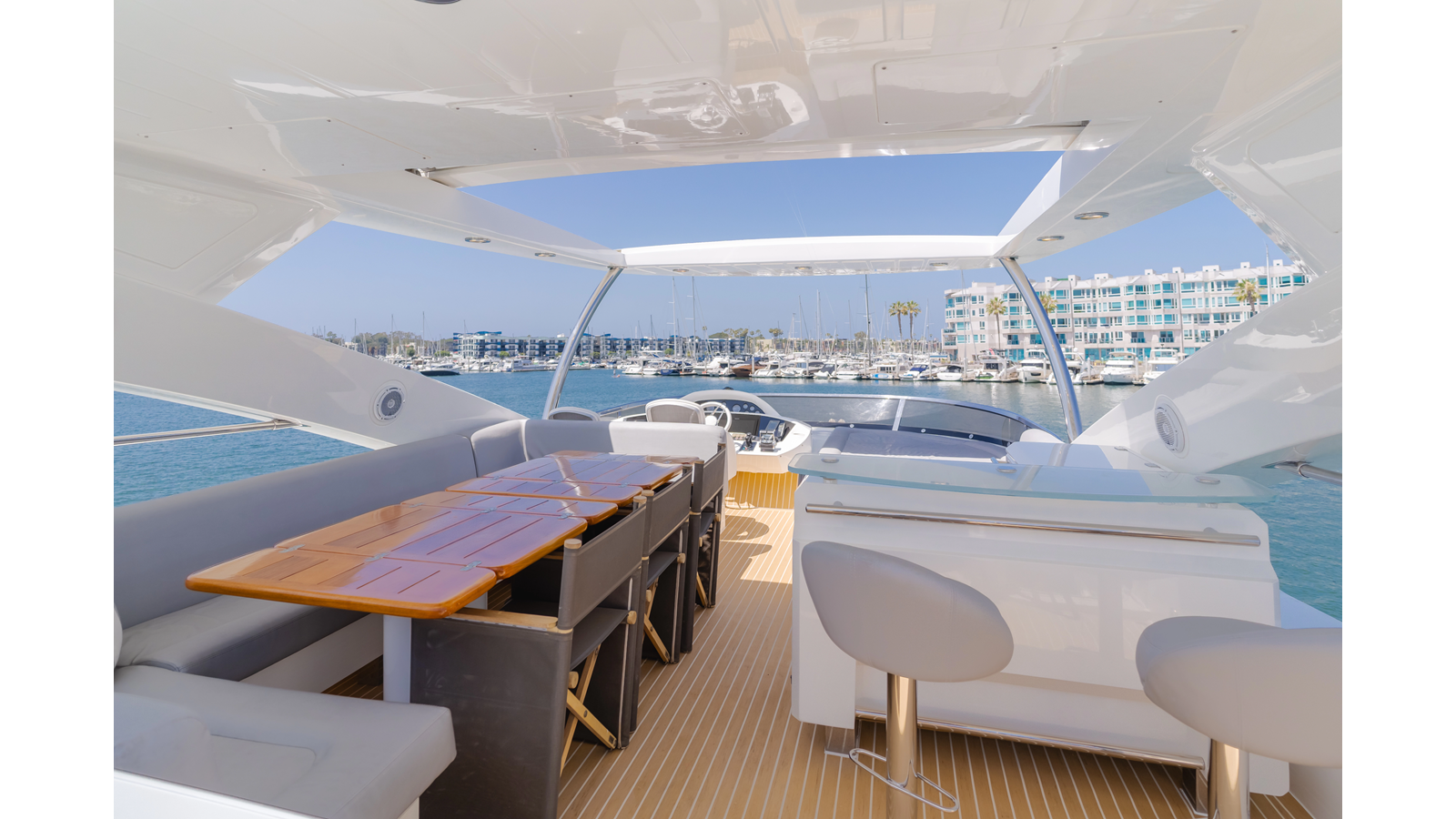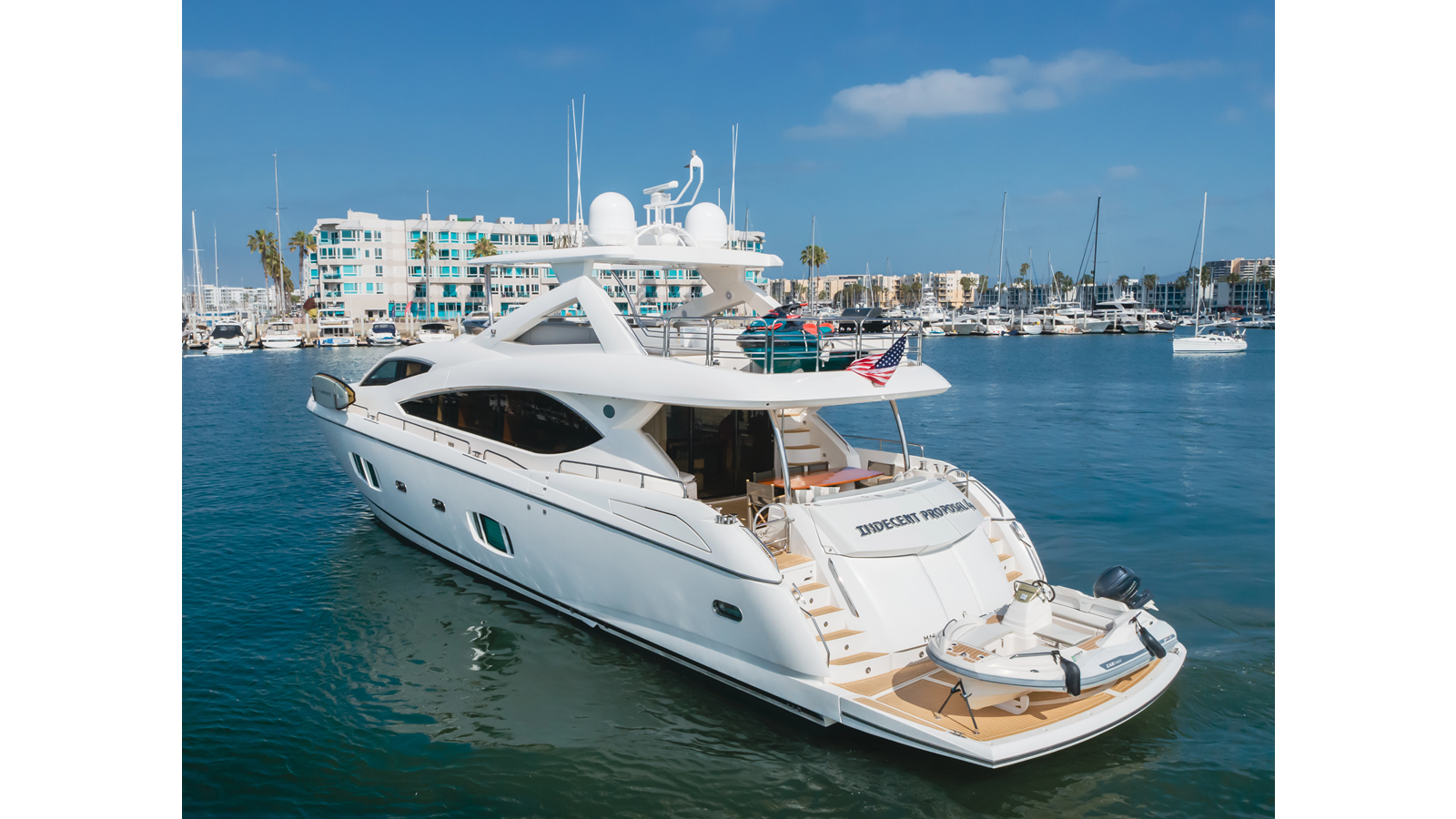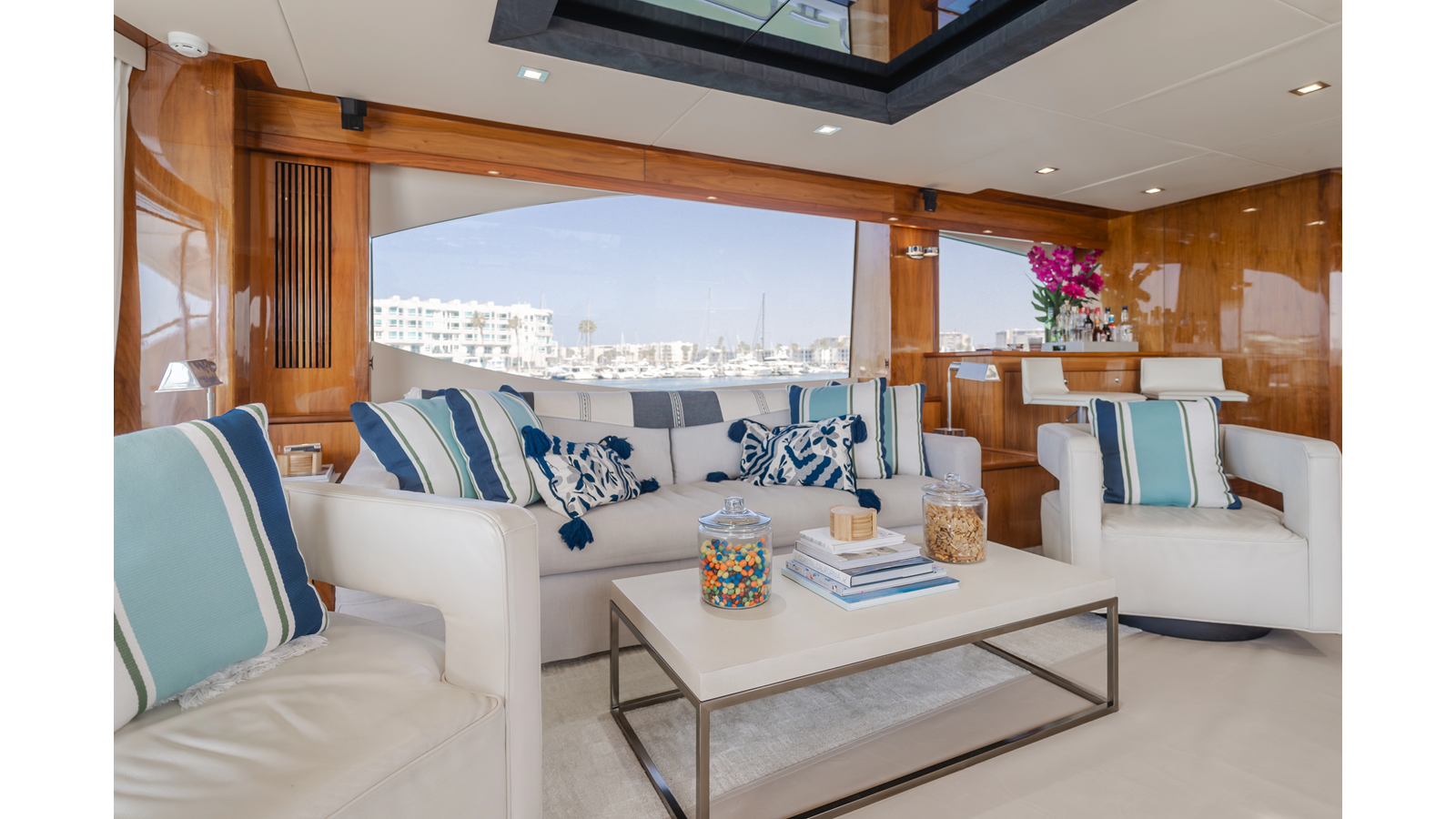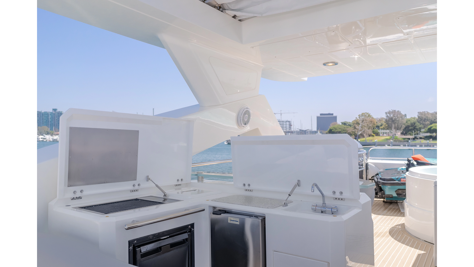 Equipped with zero-speed fin stabilization, ensuring a comfortable ride underway, or at anchor.