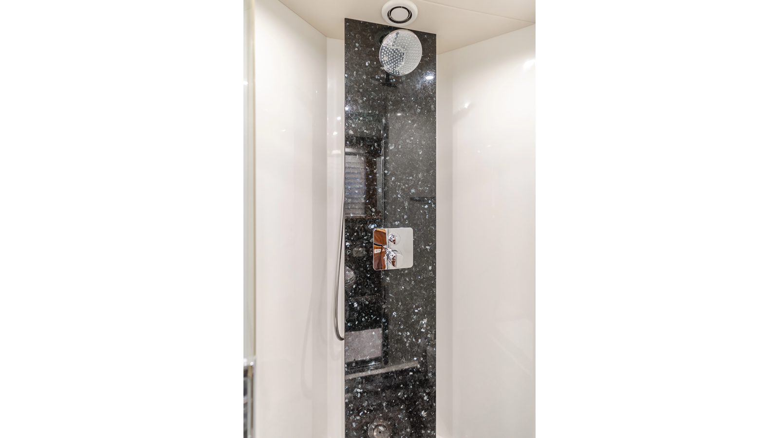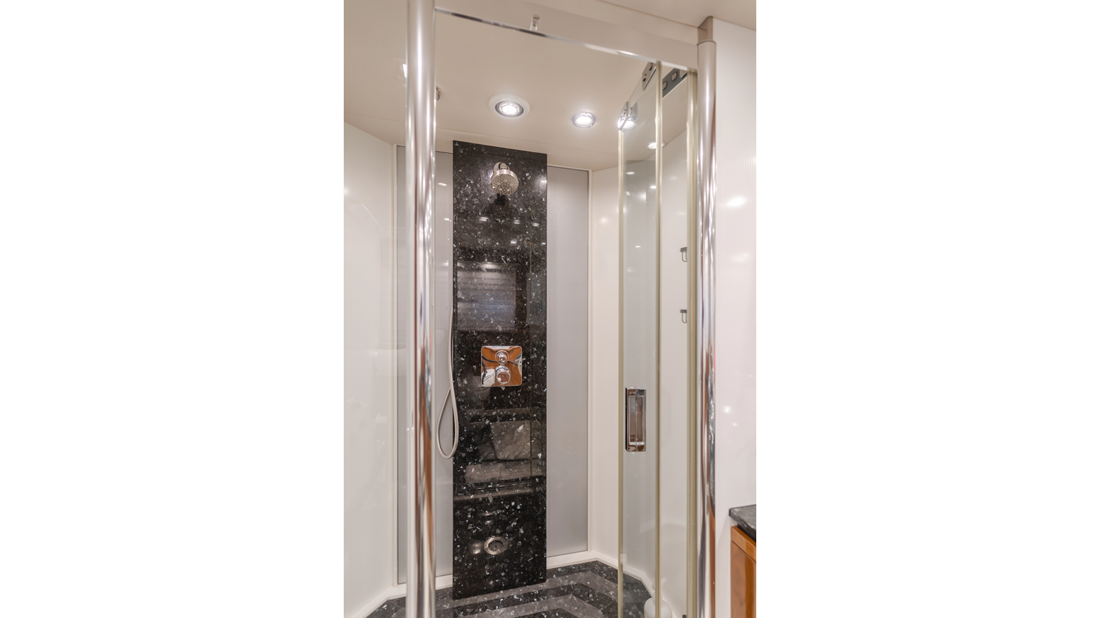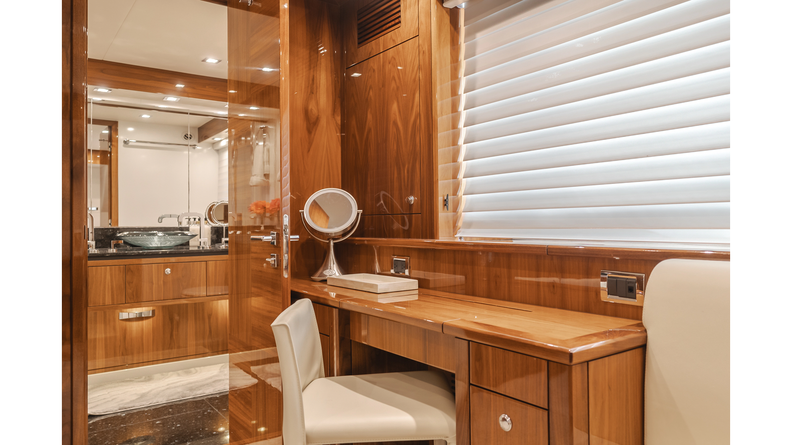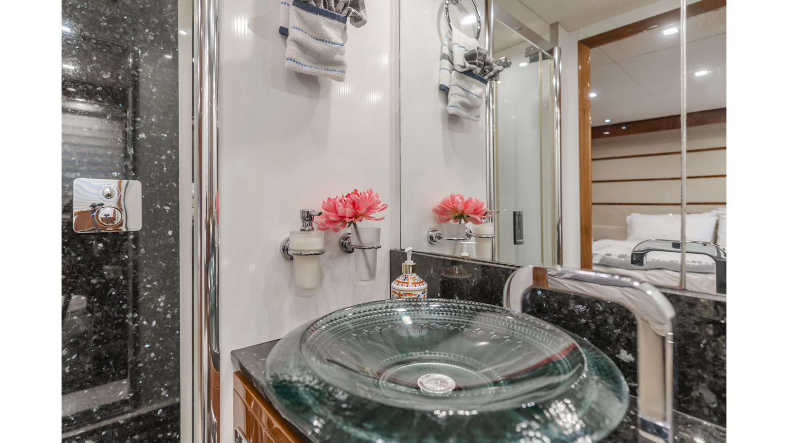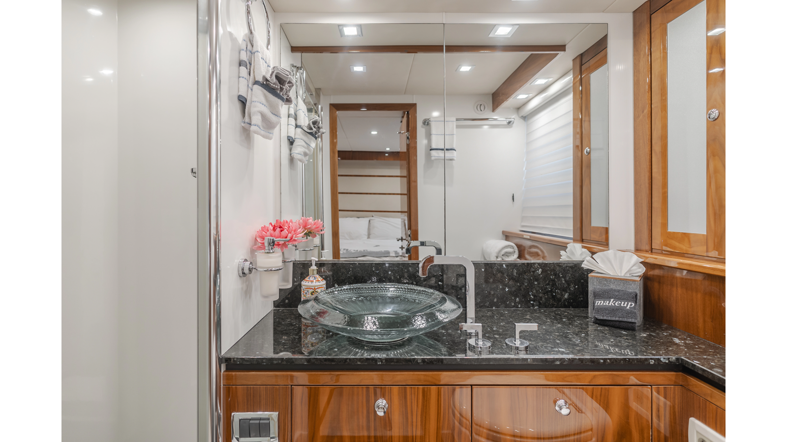 Equipped with zero-speed fin stabilization, ensuring a comfortable ride underway, or at anchor.