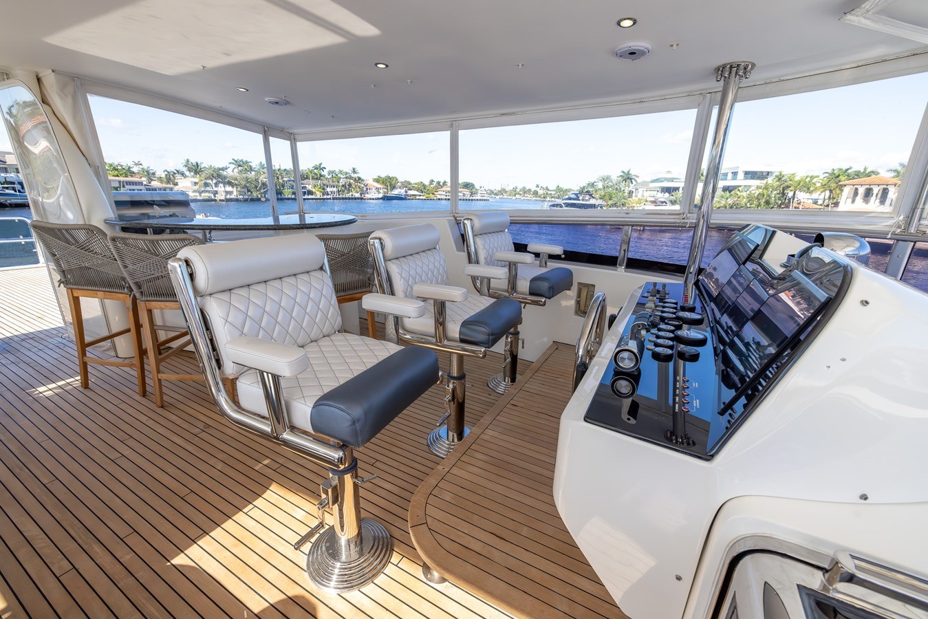 Aft to the previous dedicated boat deck is a great area for sunning or adding the Fly Shade as needed now that the tender is below.