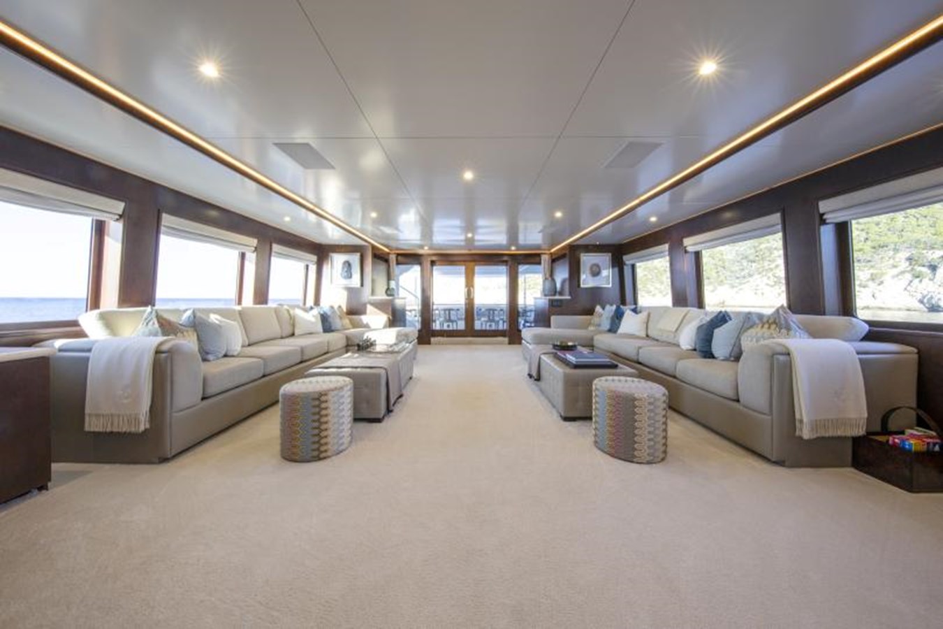 The ideal yacht to experience the outdoor lifestyle, LADY NORA offers a variety of exterior living areas across her three decks, including a lounge area on the main deck aft, a comfortable seating area on the upper deck aft, and a forward-facing lounge on the bow, which can be covered with a sunshade during the heat of the day. Both the upper deck aft and the bow lounge can also be set up for dining, with the upper (bridge) deck aft serving as the yacht’s primary dining location. The best seat in the house can be found up on LADY NORA’s sundeck, which offers panoramic views of the ocean. The perfect space for entertaining, the forward section of the sundeck is fitted with a large sun pad plus a spacious Jacuzzi pool for relaxing after hours. Aft of the Jacuzzi is a versatile lounge/dining area with a bimini top to protect from the sun. Light and open, LADY NORA's interior has an open layout that can accommodate a large group of guests without feeling crowded. Finished with a neutral colour palette, the darker oak veneer cabinetry is balanced with lighter luxury carpeting, while oversized windows allow an abundance of natural light to flood the interior space. On the main deck, a spacious full-beam saloon comprises a lounge space and a formal dining area for up to thirteen guests. Forward of the saloon, open stairs lead up to the sky lounge above where there is a second saloon area providing views of the ocean in all directions. LADY NORA’s staterooms have been updated in recent years by Spanish yacht design studio BYD and feature chic white décor to emphasise the feeling of space and natural light onboard. The stylish Master suite is located forward on the main deck and features oak panelling with warm ambient lighting. An Owners’ private office is positioned just before the Master cabin, offering a quiet and dedicated workspace. LADY NORA’s guest accommodation includes two double staterooms and two twin staterooms. The starboard twin offers two single beds and a Pullman with a custom desk designed for gaming, while the port twin features three single beds and a Pullman, making it ideal for children or flexible family arrangements. All of the guest accommodation enjoys ensuite bathroom facilities. MECHANICAL EQUIPMENT