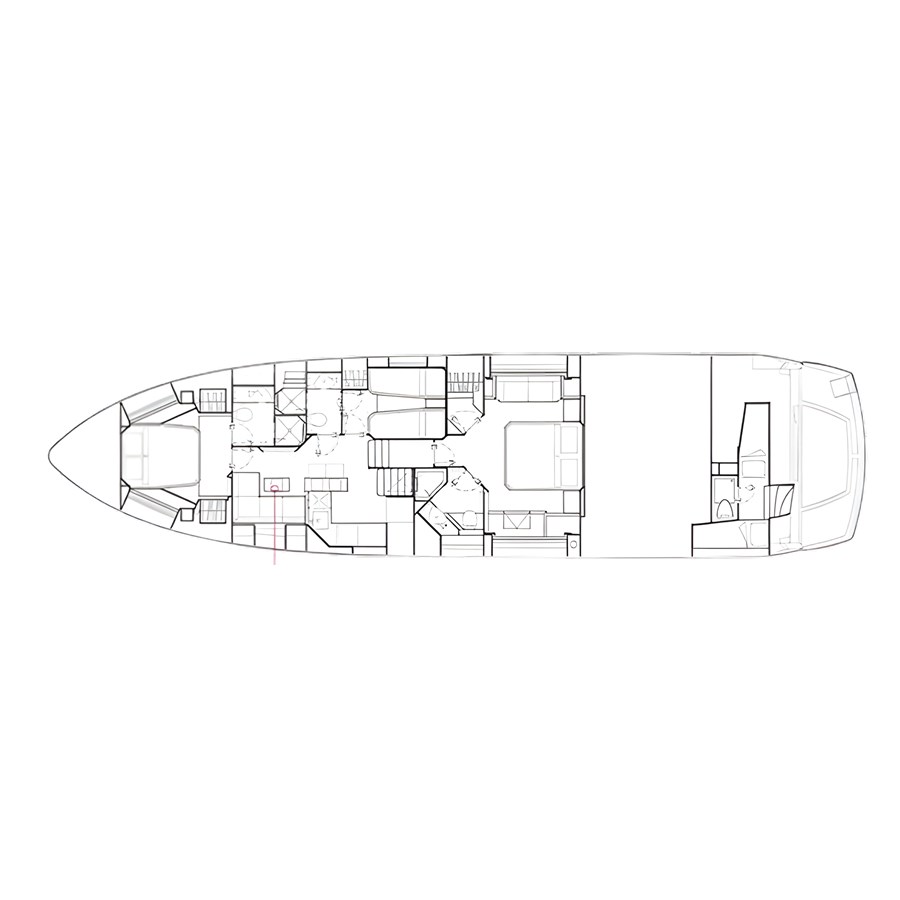 The yacht features a well-thought-out layout comprising three luxurious cabins, a spacious lower saloon, and an open-plan galley. The main saloon offers exceptional comfort and seamlessly connects indoor and outdoor living spaces.