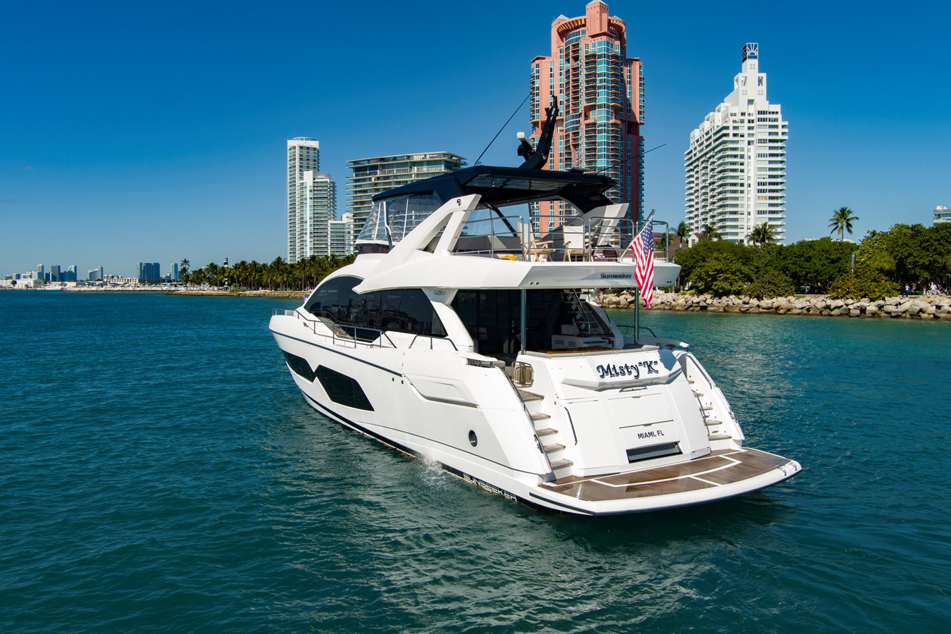 The 2024 Sunseeker 76, Misty K offers a refined balance of space, performance, and intelligent design. Powered by twin MAN V12 1550 engines, she provides efficient cruising and shows exceptionally low engine hours. Presented in excellent, near-new condition, she is ready for immediate enjoyment.