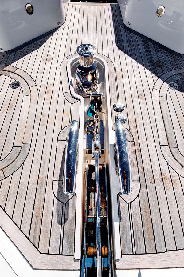 - Teak decks on cockpit, foredeck and flybridge; underwater lights ×8