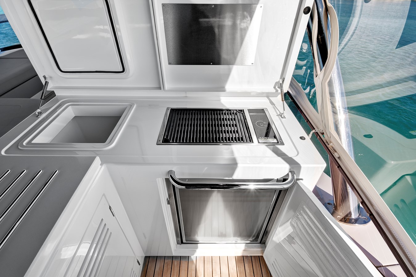 - Beach Club Package with drop-down electric BBQ, rain shower and fold-out seating