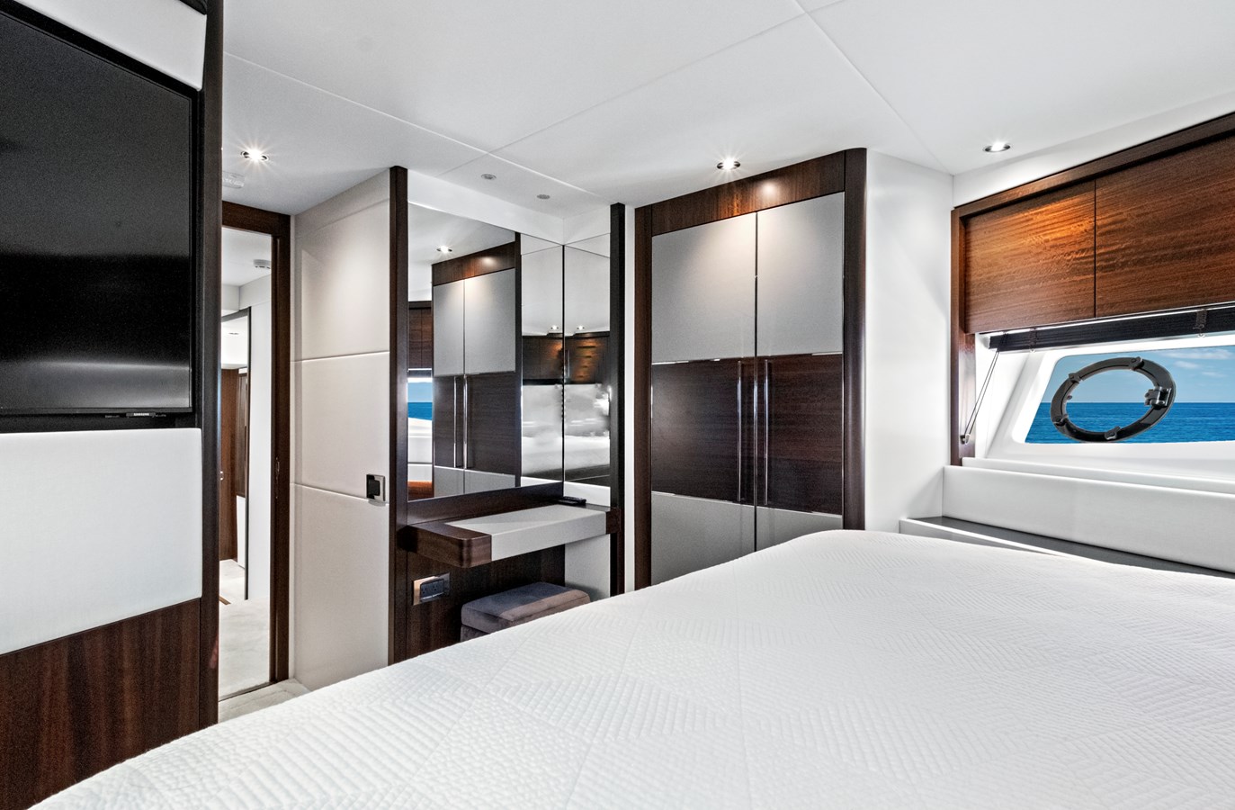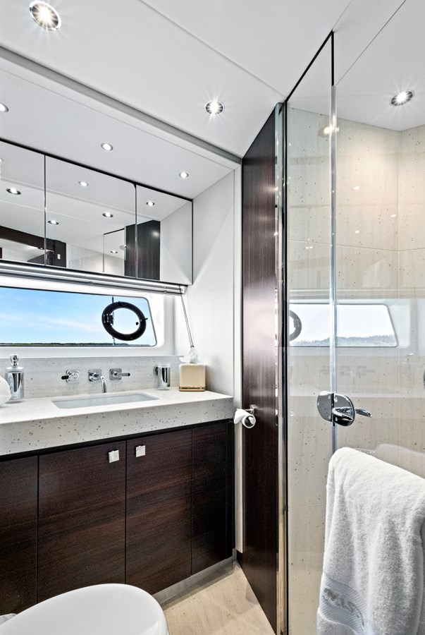 Designed to optimize interior volume and natural light, the Sunseeker 76 benefits from a generous beam that enhances stability and increases usable space across all decks. Below deck, the cabins are thoughtfully arranged to maximize privacy, comfort, and storage.