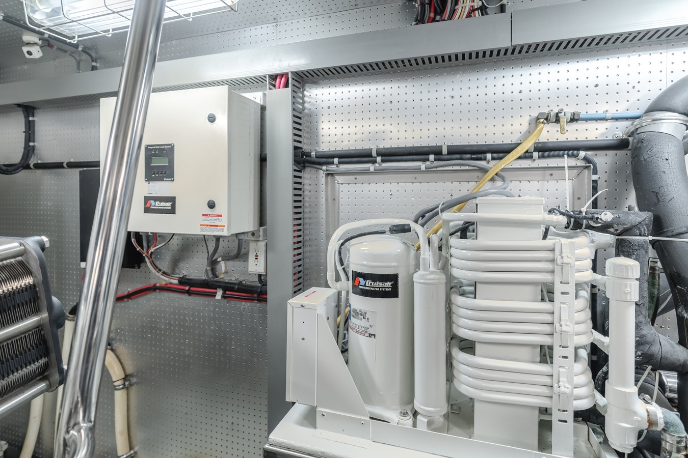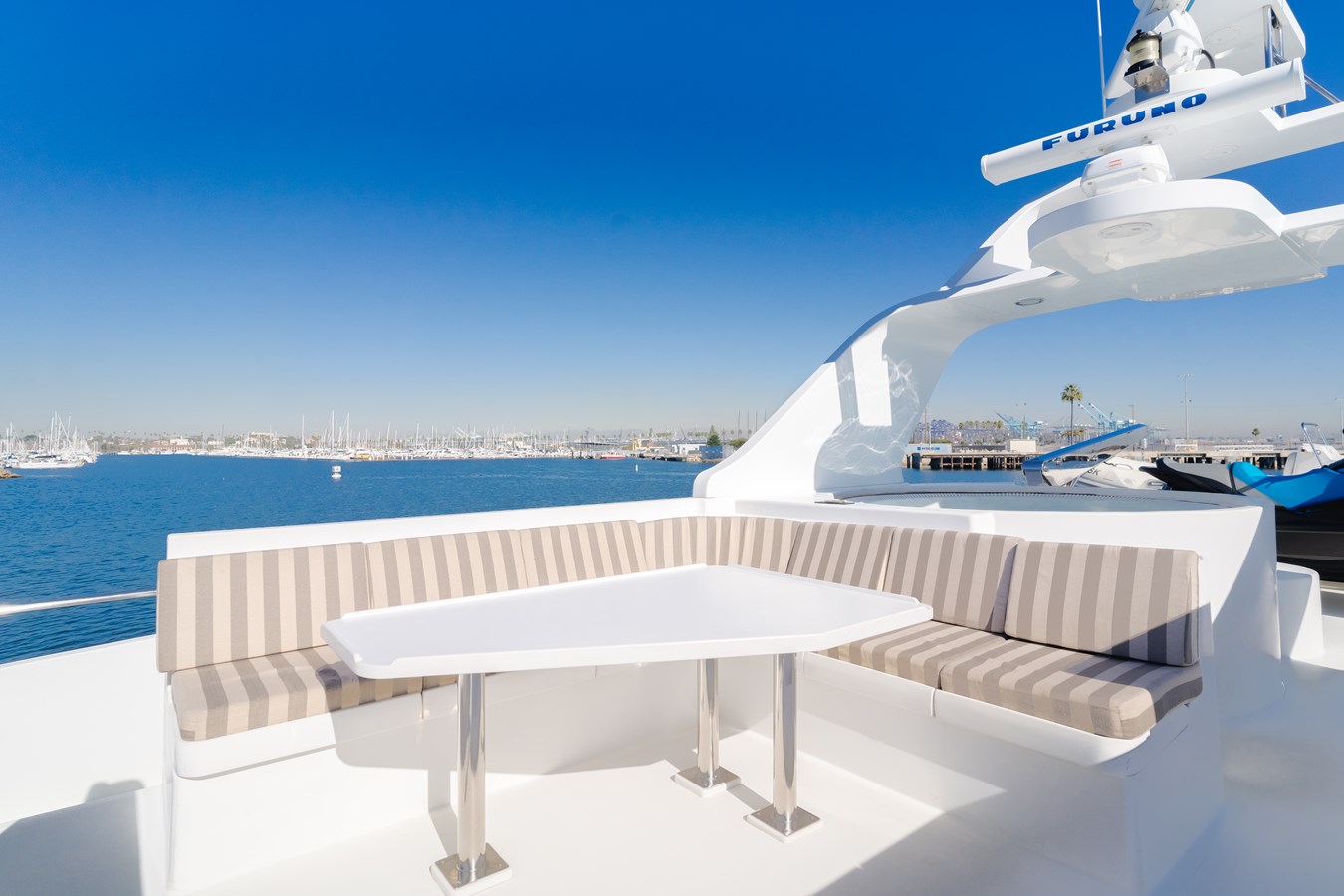 The 2003 97' Transworld Yacht boasts a spacious and elegantly designed deck, providing panoramic views of the waters that stretch beyond the horizon. The place to be is undoubtedly the onboard hot tub, strategically positioned to offer an unrivaled experience of relaxation while surrounded by the beauty of the open ocean.