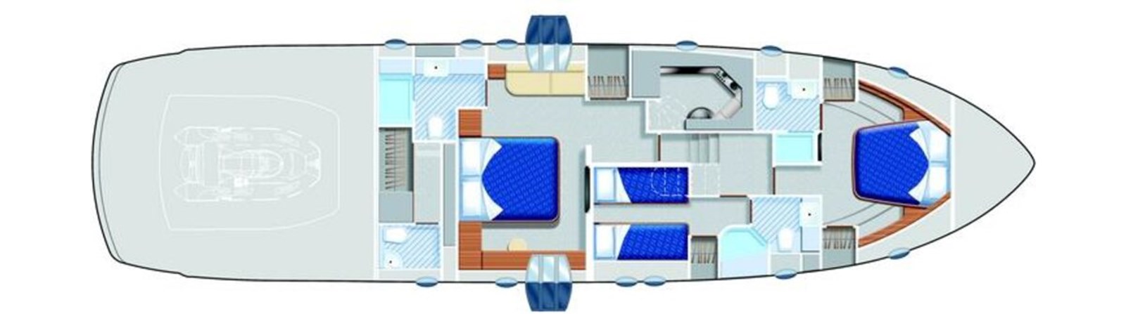 - Three ensuite cabins sleeping six guests, plus one cabin for the captain or crew