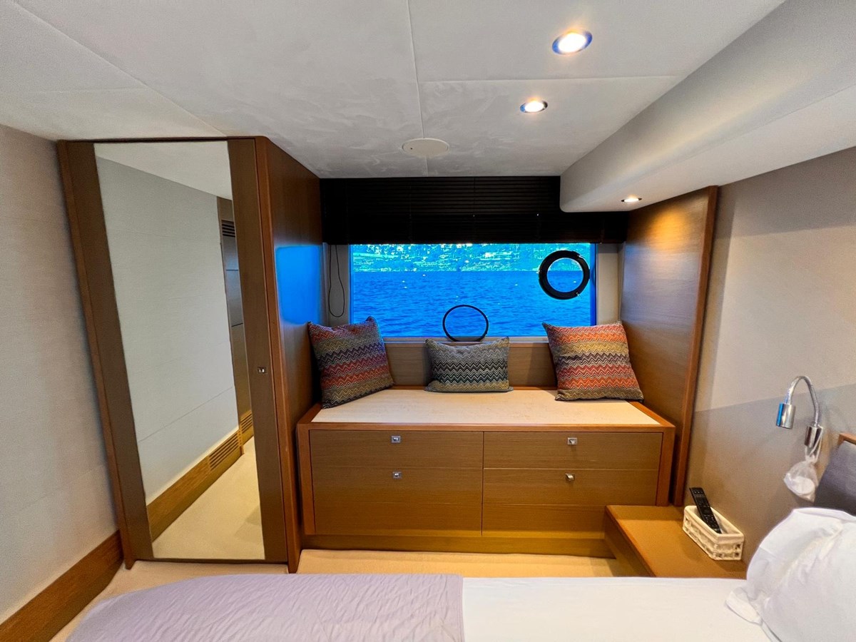 - Flybridge: U-shaped seating, wetbar, sunpad