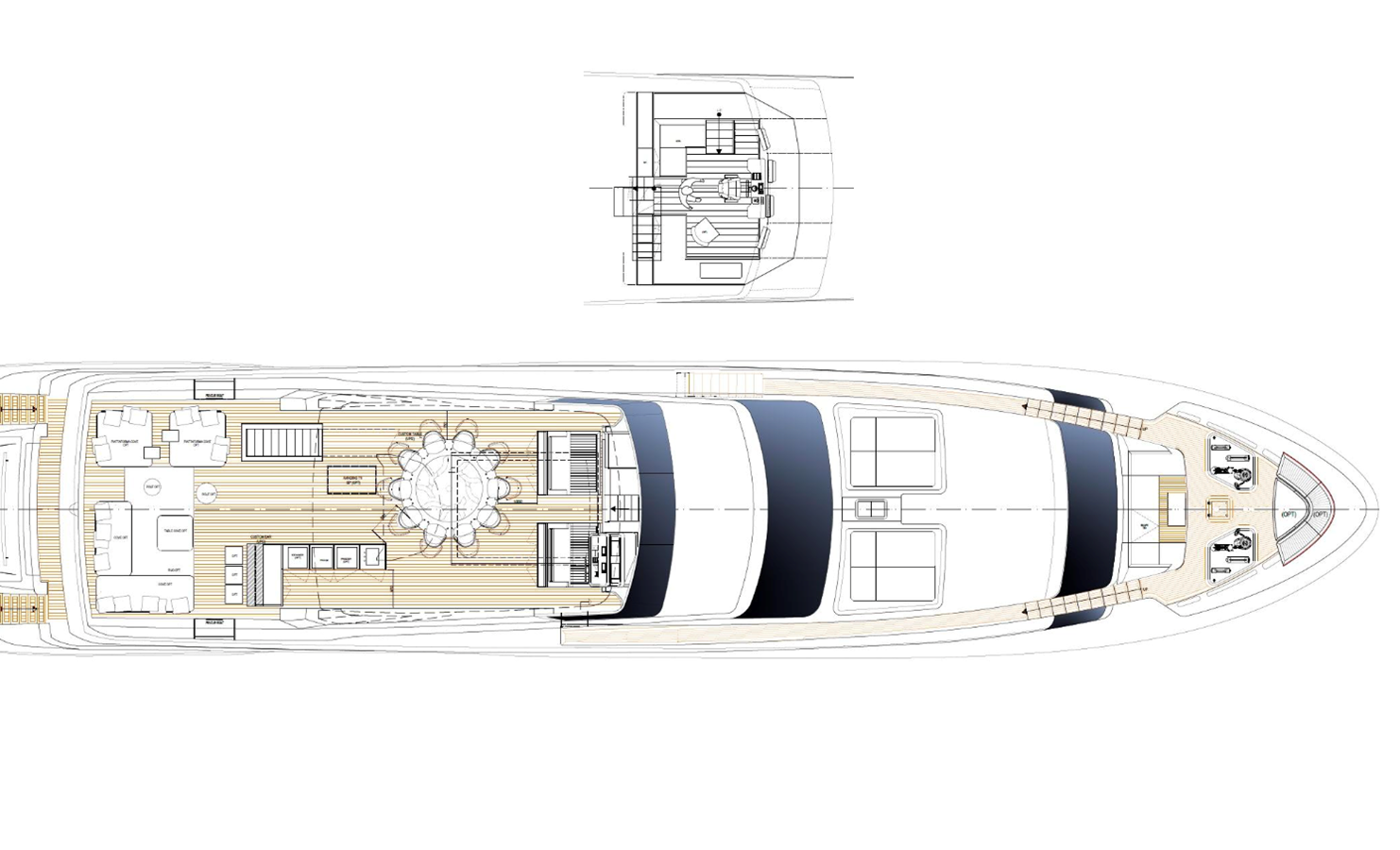 - Custom flybridge design: Optimized layout and spacing, equipped with a bar, dining and lounge areas for relaxed social gatherings.