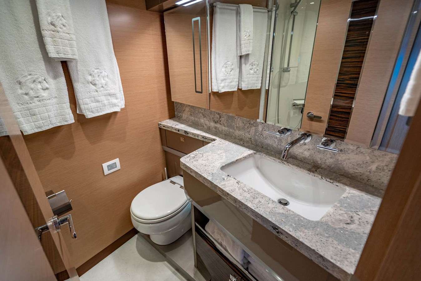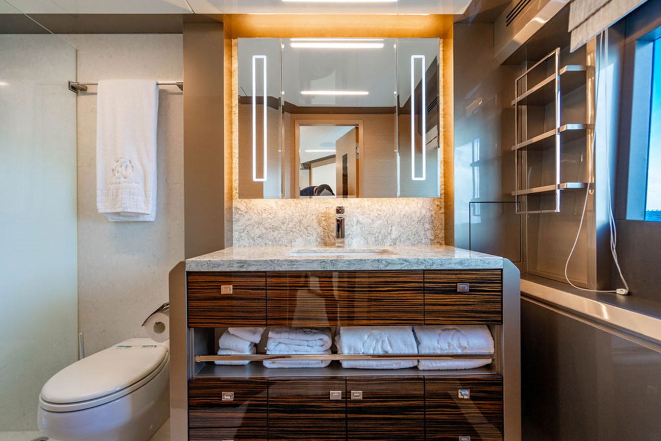 - Dual-sink head with shower and dimmable LED vanity mirror GUEST STATEROOM/ VIP: