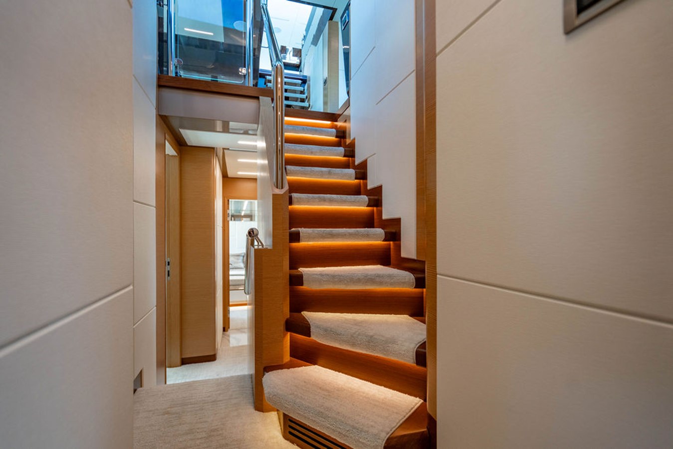 • Grand Salon: The spacious main deck salon offers luxurious social areas with seamless visibility to the bow lounge, creating an open, inviting space ideal for entertaining or relaxing.