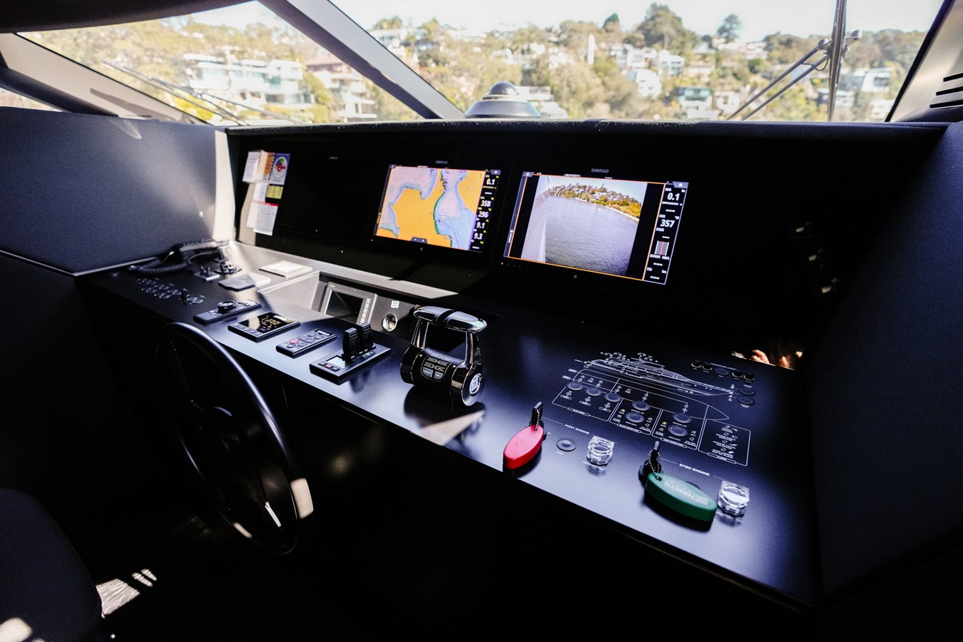 Powered by twin MAN 12V 1900hp engines, she delivers exhilarating top speeds of 31 knots and effortless cruising at 26–27 knots. A hydraulic bow and stern thruster, zero-speed stabilizers, and aft-deck docking controls provide outstanding comfort and handling, both underway and at anchor. Twin upgraded Onan generators (27kW + 19kW) with Racor filtration, smoke separation systems, and tropical-spec air-conditioning ensure quiet, reliable onboard operation in any climate.